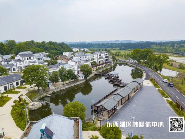 一条条平坦整洁的柏油路直通农家,一座座灰瓦白墙的房屋井然排开,绿树成荫的游园里,亭台、长廊、池塘相映成趣。