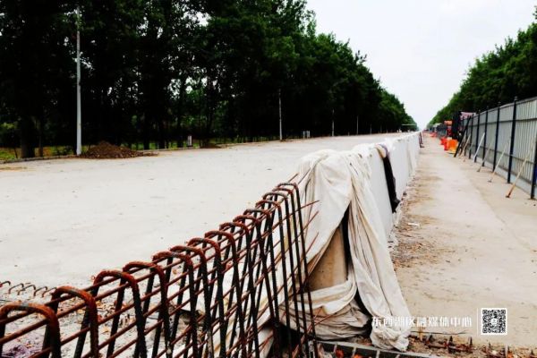 6月6日,107国道东西湖区新沟桥至东山段,交通防护墙已搭建起钢筋架,钢筋架浇灌水泥浆后,将形成坚固的交通防护墙。