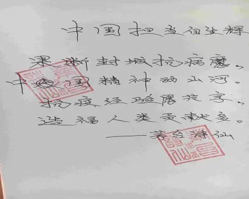 写这两首诗的人是东西湖区径河街鑫海花城小区的一位居民,今年疫情期间,医护工作者坚守在抗疫前线的事迹深深感动了他。在疫情期间他写了1000首抗疫诗,表达对当代最可爱的人深深的敬意。