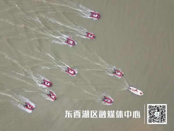 在大家还在惊叹这场实战与高科技演练的完美结合时,湖面右侧10艘冲锋艇呈三角搜索队形驶来,行至湖中间,逐步变换为“一”字搜索队形、环岛搜索队形。