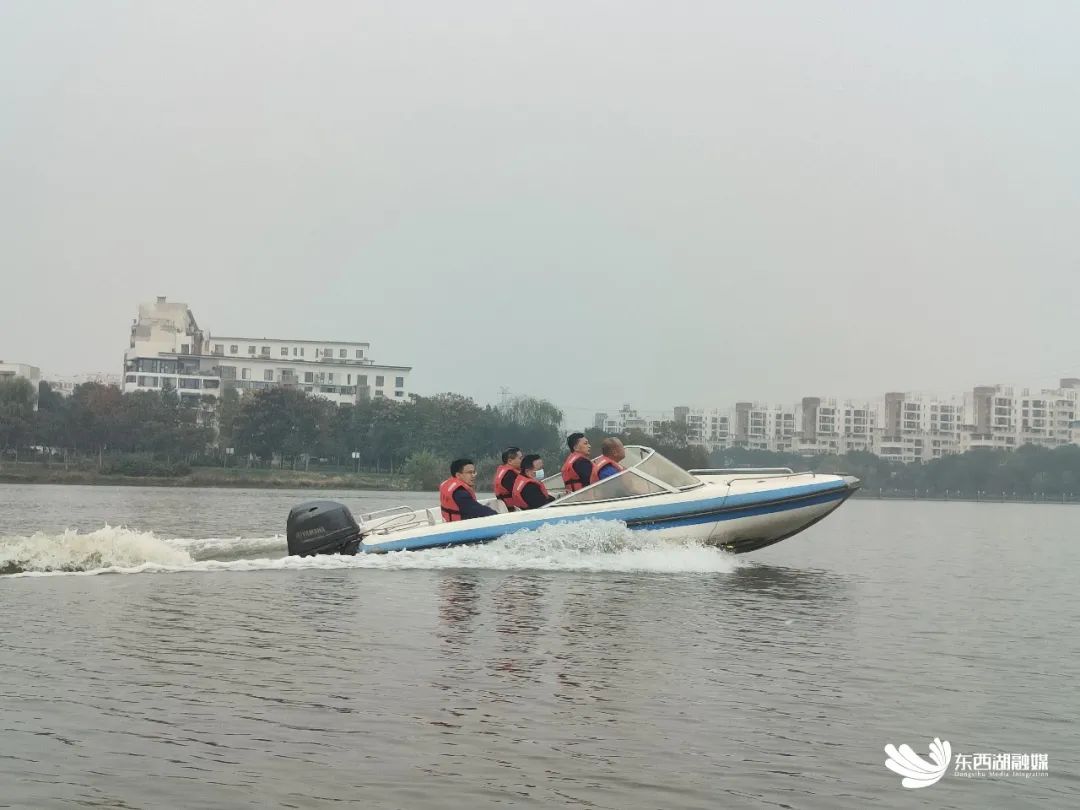 杨泽发乘船查看东大湖水环境管控情况