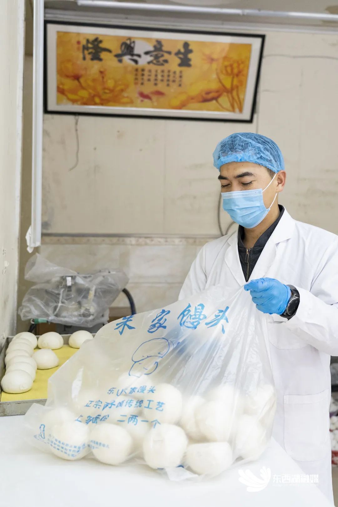 今年的1月8日,朱兴华着手蒸制老面馒头装备捐赠给西安。“三天两夜盘了40000多次老面疙瘩,做了21000个馒头。街坊邻居听说馒头要发往西安,都来店里帮忙打包装袋。”