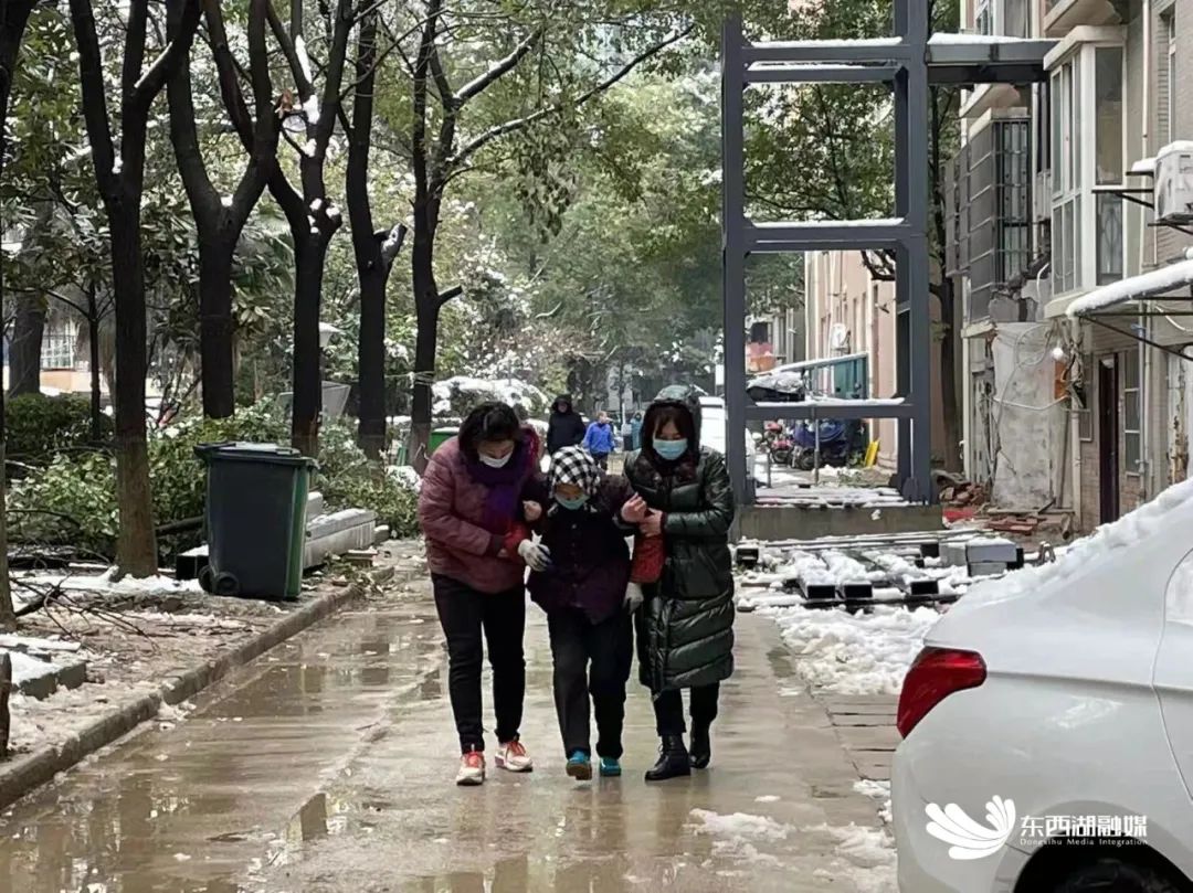 2月7日下午,一场大雪后,熊婆婆在所住常安佳苑小区内走路时不慎摔倒,一时无法动弹,恰好被刚结束铲雪融雪工作、正在小区内巡查的叶莉等三位社区工作人员看到,在熊婆婆反复表示感觉无大碍后,三人将熊婆婆慢慢扶起。