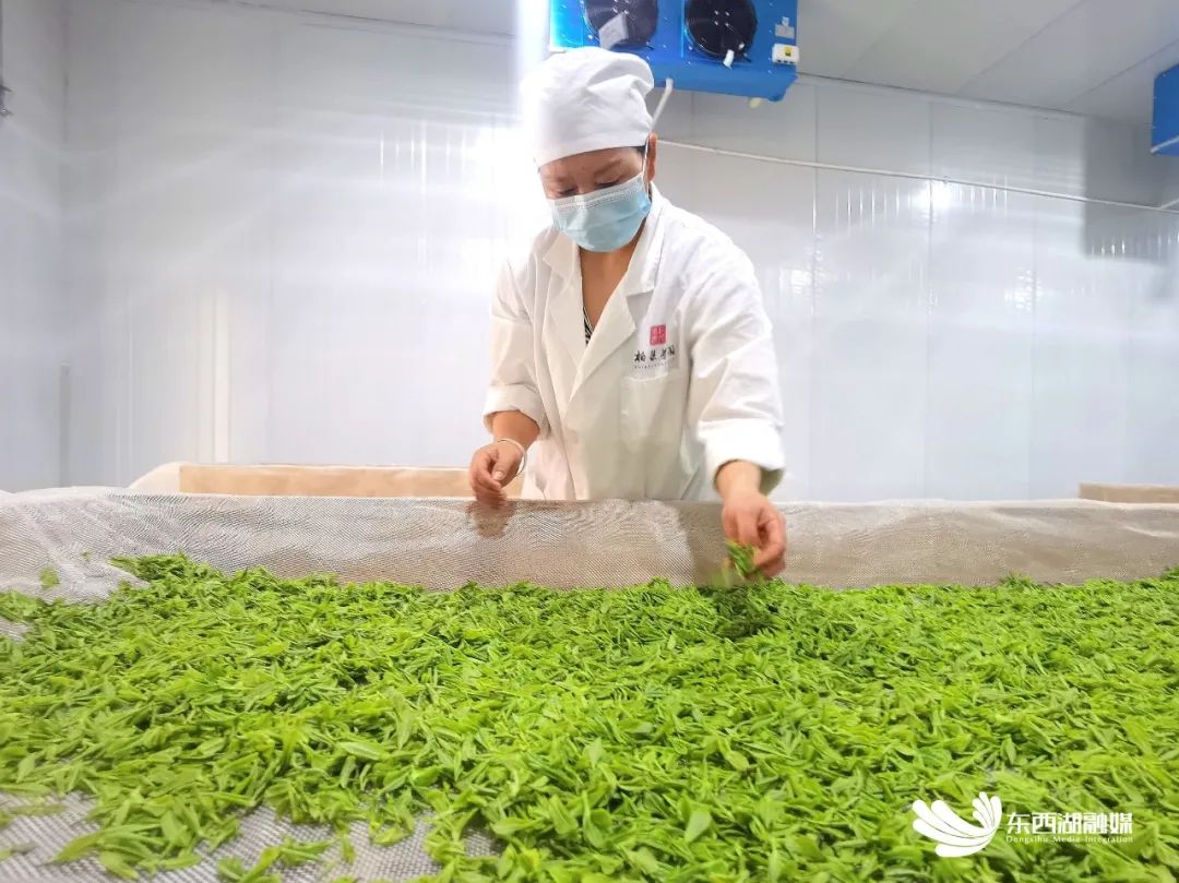 “从春茶采摘到喝上第一口春茶,只要3个小时就可以。而去年却做不到。”胡建明说,以前从采茶人手中接过新鲜的茶叶,到加工完成,需要经过晒青、凉青、摇青、晾青、炒青、糅青、烘焙等7道工序和5人共同合作才能完成,花费的时间特别长。为了解决这个问题,去年秋季,柏泉茶园新建了制茶车间,通过机械化制茶,今年春季产茶的效率大幅度提升,茶叶的口感和品质也都得到提升。