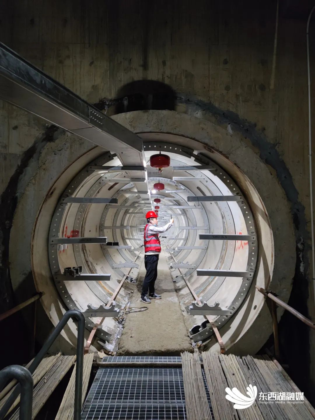 工人在隧道内巡检。