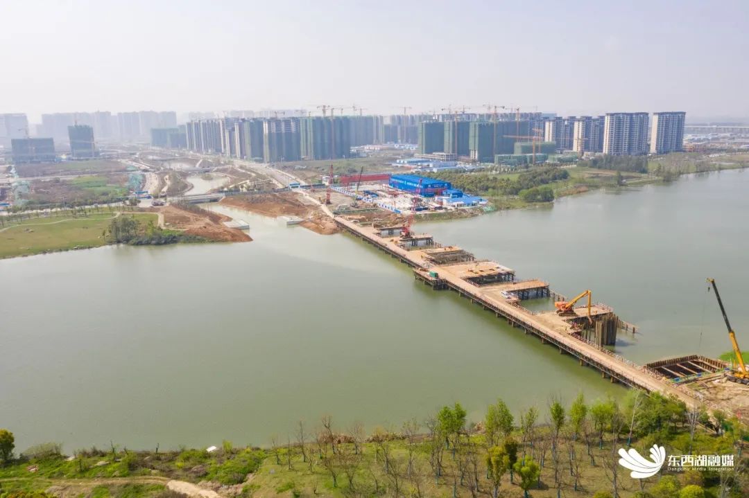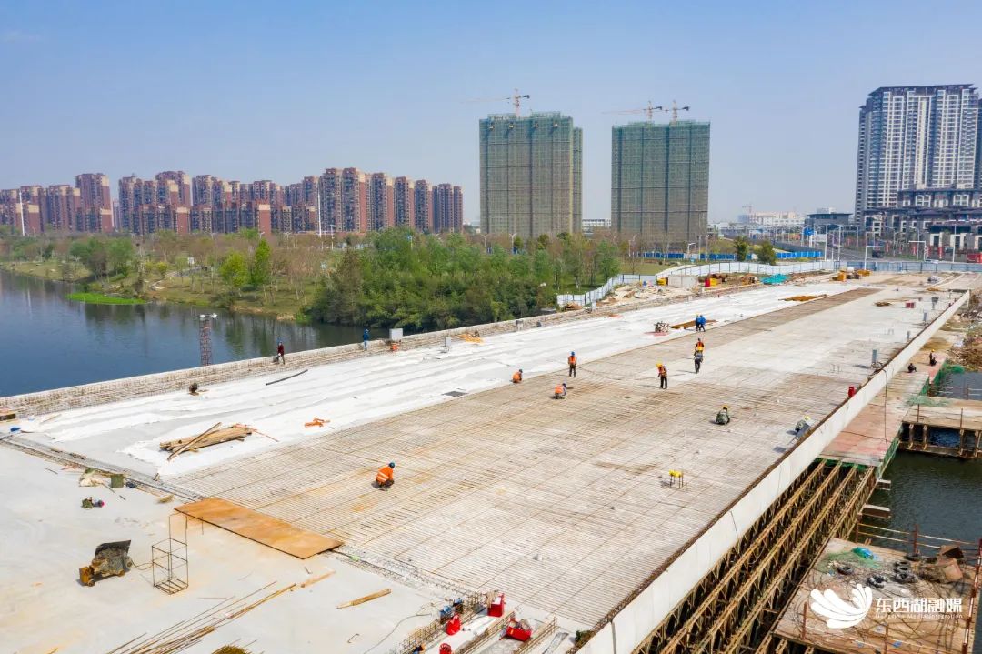 施工方中建三局一公司基础公司东西湖片区联合党支部书记张国庆介绍,共享桥72根桩基钻孔、灌注目前已全部完成,按计划将于4月30日主汛期来临之前,完成10个承台的全部水下工程,大桥预计今年10月完工。“去年10月开工以来,为抢抓工期,我们搭建了钢筋加工棚,钢筋构件加工、焊接、绑扎成型等工艺与户外现场作业同步进行,从而节省施工时间。”