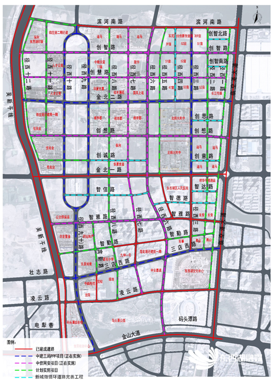 新城规划定位为临空经济的商贸引擎、数字经济的创智天地,片区道路多以“创”“智”命名,彰显“创新之城”之义。