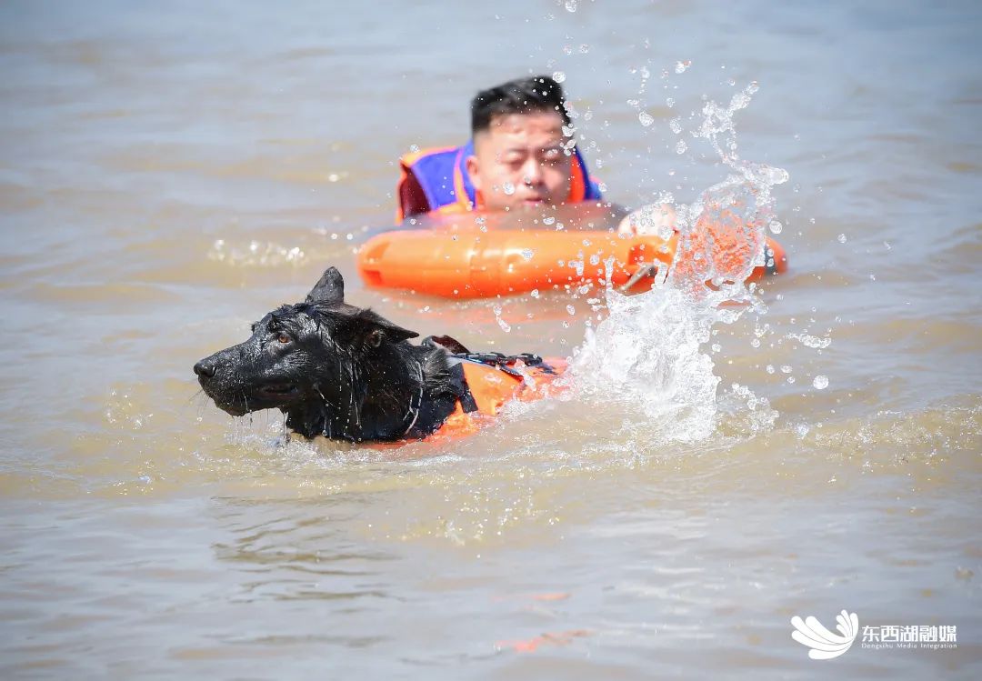 每一次口令的下达,都能看到雷克毫不犹豫地执行。陆地障碍、水里营救、物品寻回等都是雷克每日的训练项目,“你别看他们不会说话,但执行任务的时候毫不含糊。”探访当天,正值高温37度,但雷克依旧展现出专业水准。