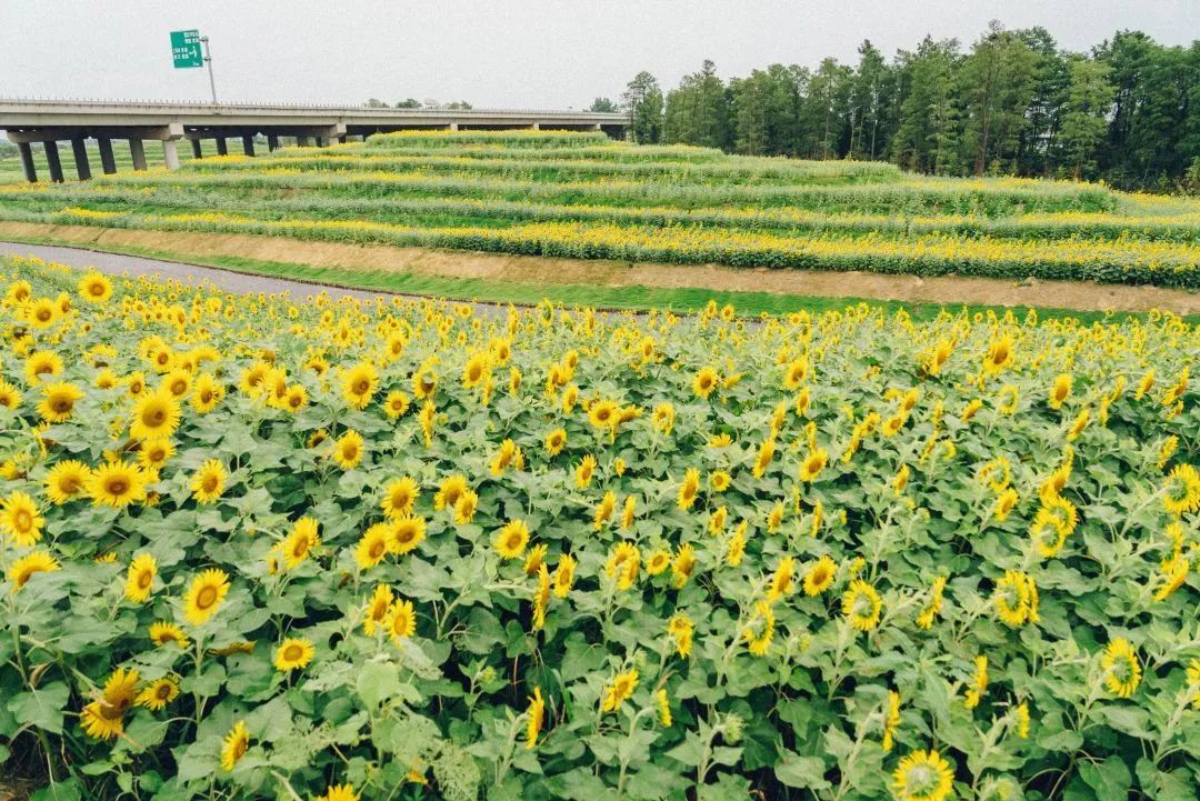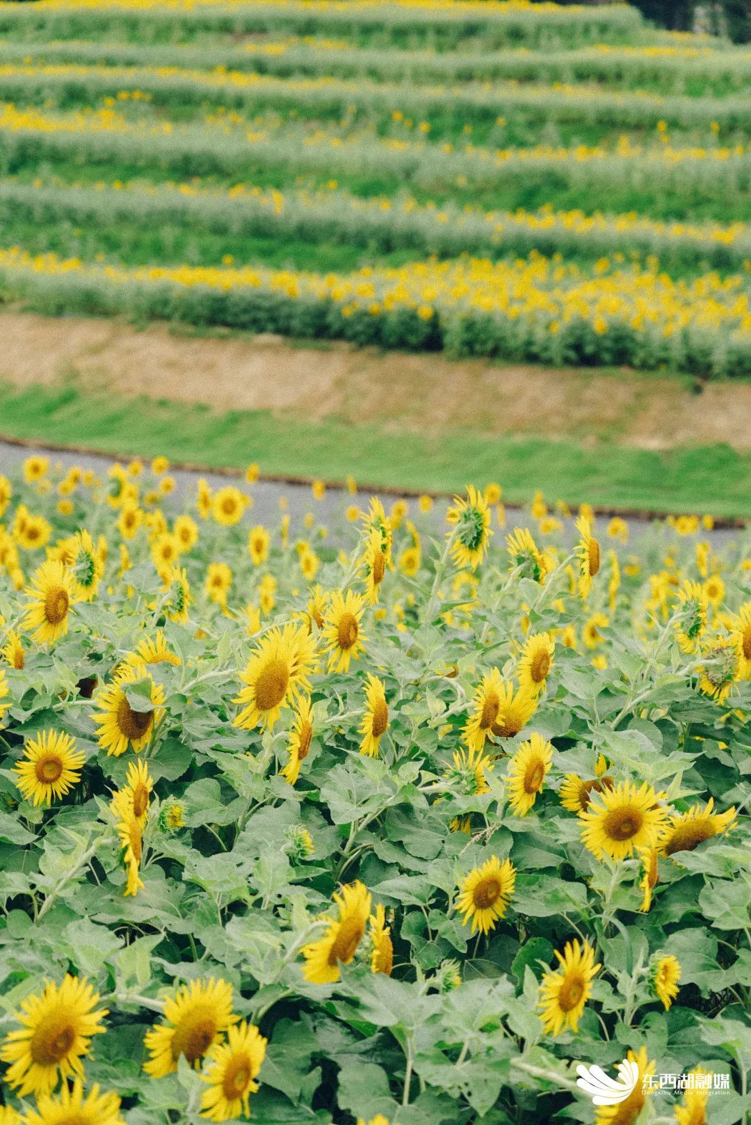 “这块土地以前堆积大量废土废石料等建筑垃圾,改造出人造梯田后,先后种植110亩向日葵,其中40亩为油用向日葵,70亩为观赏性向日葵。”