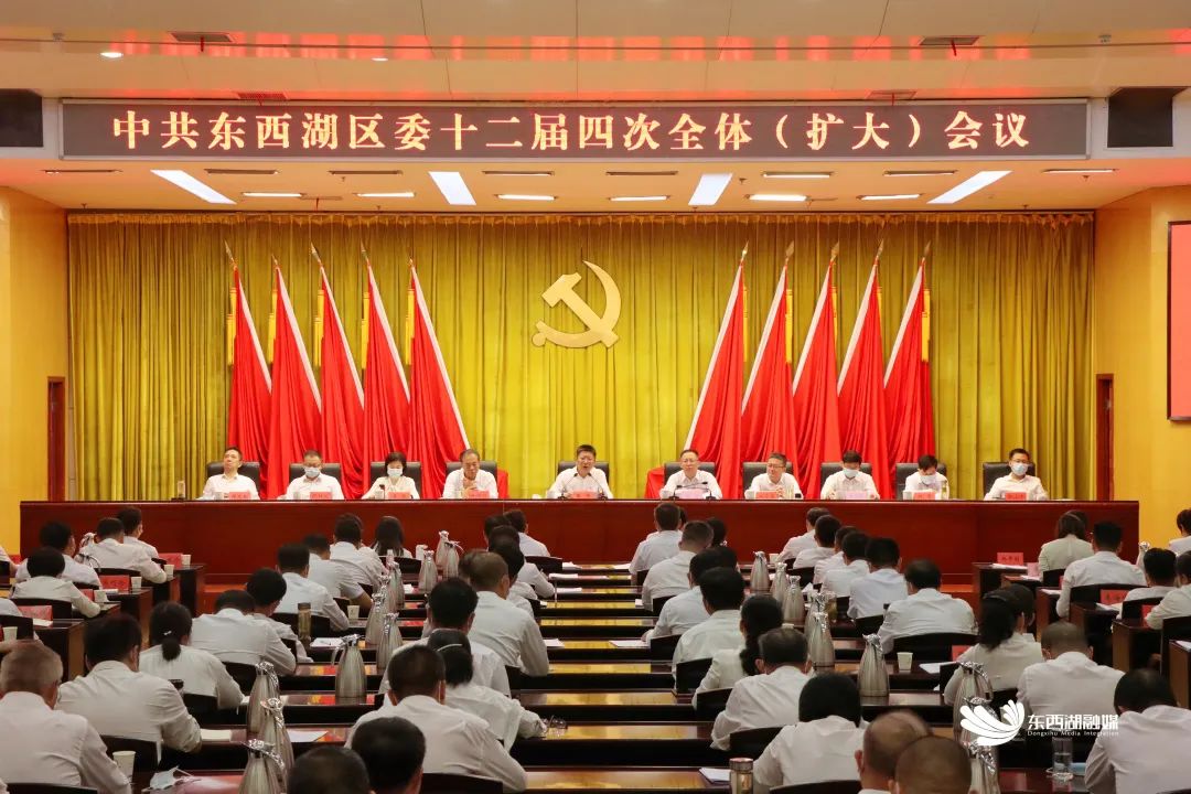 8月13日,中共东西湖区委十二届四次全体(扩大)会议召开。全会认真学习领会习近平总书记考察湖北武汉重要讲话精神,就推进省第十二次党代会、市第十四次党代会和区第十二次党代会部署要求落地落实提出具体要求,审议通过《中共东西湖区委贯彻落实〈中共武汉市委关于学习贯彻习近平总书记考察湖北武汉重要讲话精神 牢记嘱托担当使命 在湖北建设全国构建新发展格局先行区中当先锋、打头阵 奋力打造新时代英雄城市的决定〉的实施意见》,全面总结上半年工作,部署下半年工作。