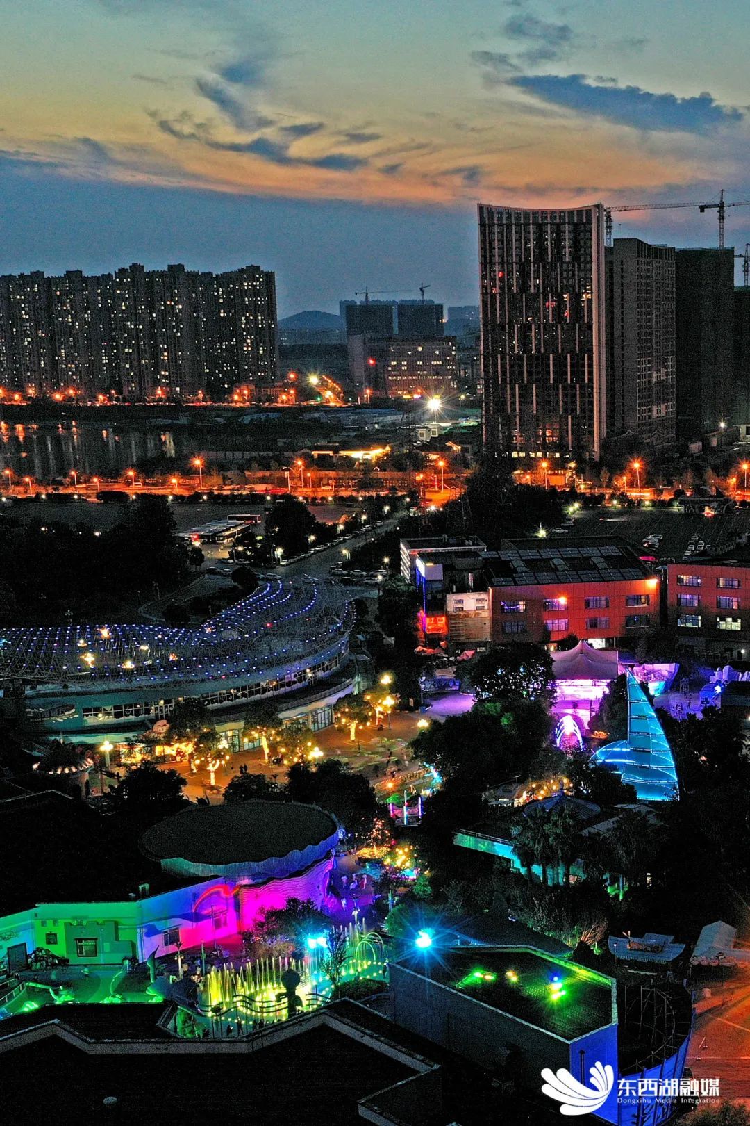 夕阳西沉码头潭小镇的铺面人气渐旺园博园的音浪开始沸腾极地海洋公园的极地魔术夜进入魔力时间东西湖的夏夜,开始了。