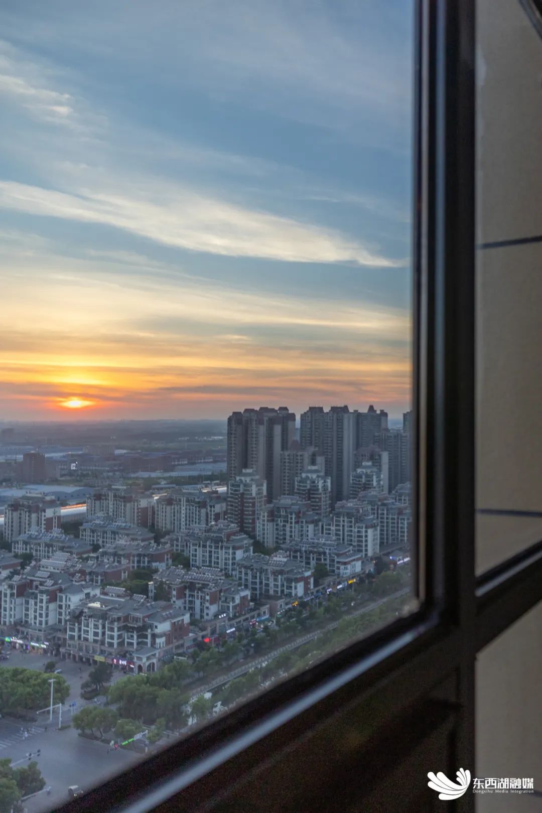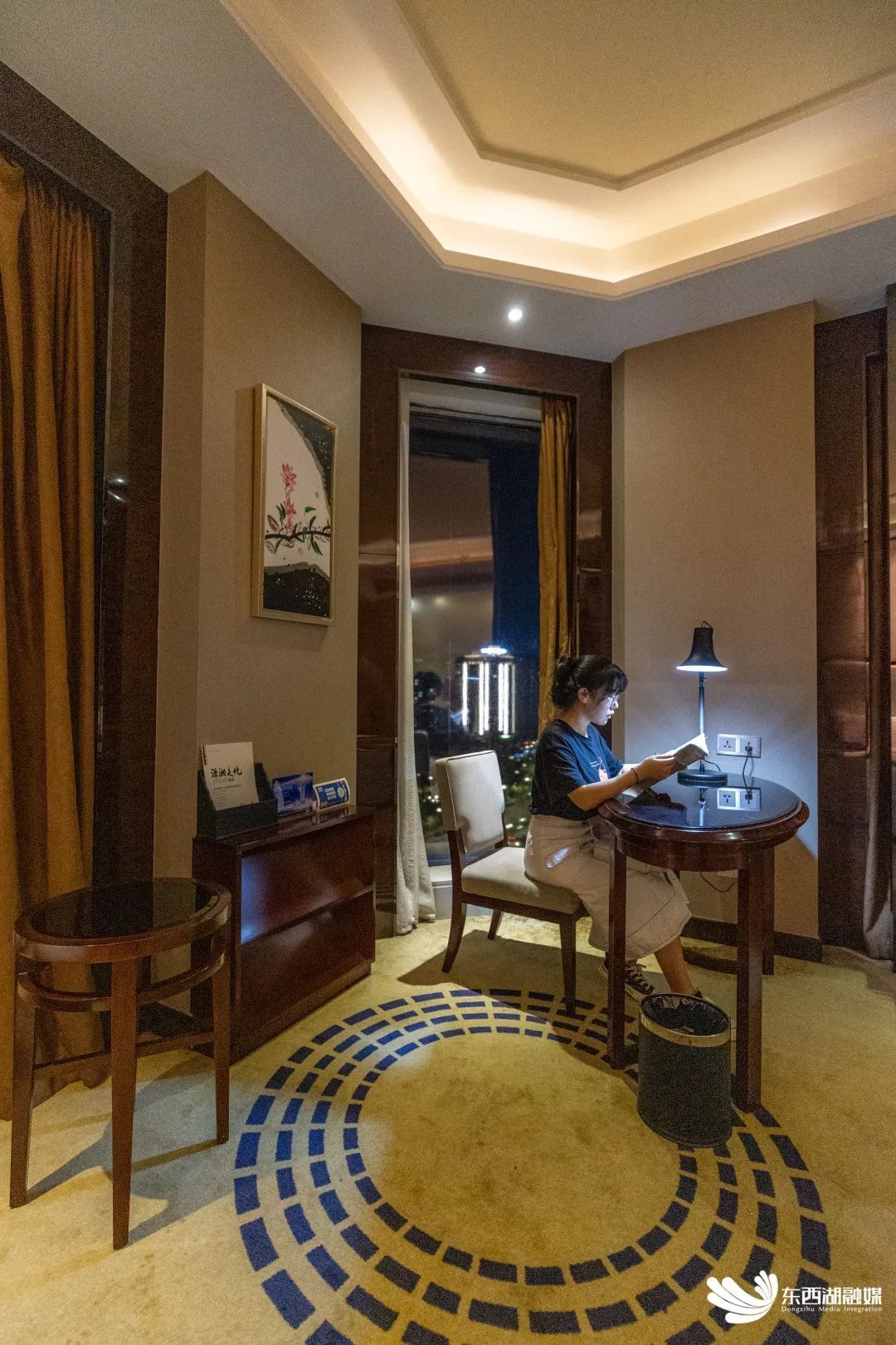 华美达东西湖酒店则是另一种简约风情。落日给这栋高耸的建筑披上一层绚烂,夜幕笼罩,完成一整天的工作,品尝过当地美食,天南地北的商务人群像归巢的鸟儿,回到这个位于东西湖腹地的建筑。