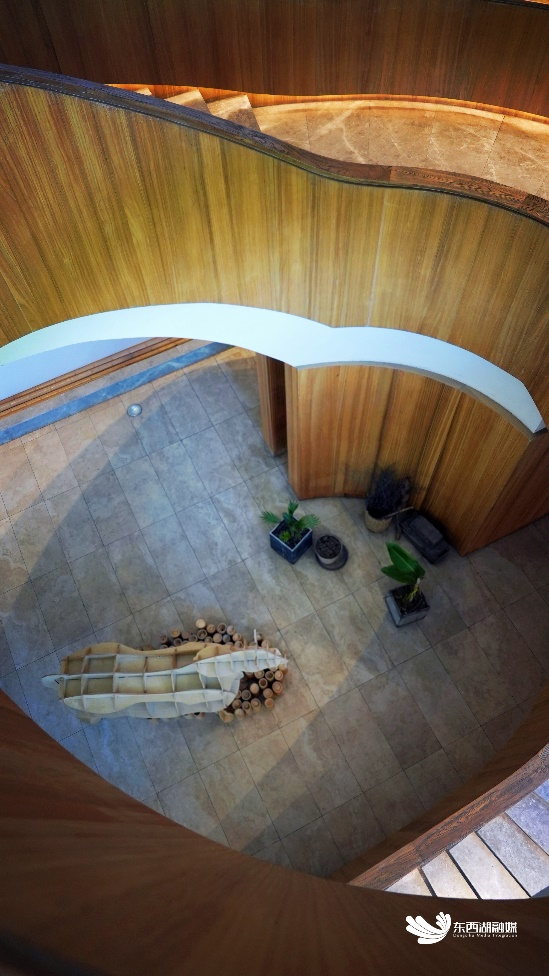 △走进“皇冠幸福里”大厅,右手边有一座旋转式楼梯