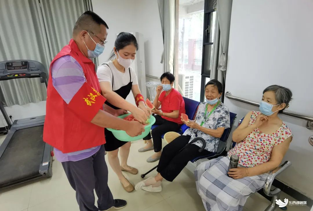慈惠墩社区老人们更爱“打平伙”,“来来来,都来拿!还有谁没拿到?”19日下午3点,慈惠街慈惠墩社区党群服务驿站纳凉点内,戴着红色袖章的朱利华正为居民们分发绿豆汤。人群里,慈惠墩社区副书记时继红也在忙碌。她介绍说,纳凉点开放当日,社区群里召集志愿者,朱利华第一个报了名。