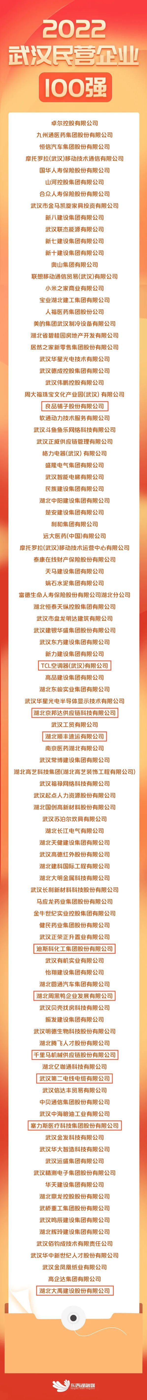 8月19日,“2022武汉民营企业100强”“2022武汉民营制造业50强”排序榜正式发布,东西湖区入选企业数量与规模再创新高,10家民营企业入选“2022武汉民宫企业100强”,7家民营企业入选“2022武汉民营制造业50强”,企业数量稳中有进。