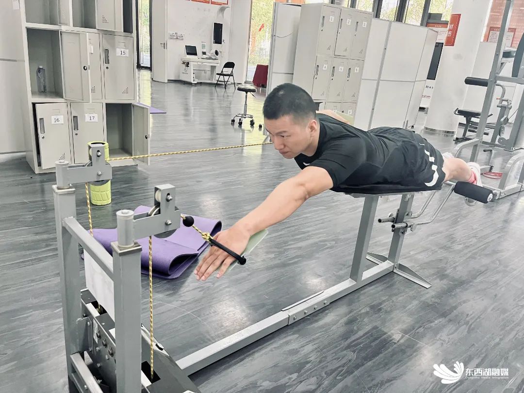 不仅规划了有氧健身区、无氧器械区、自由力量区和热身拉伸区,还配备了血压、血脂、身体基本指标测试仪、亚健康测试仪等体质监测设施设备。其中,还包括军运会比赛期间,运动员们常用的游泳训练器,可以帮助游泳爱好者进阶提升。