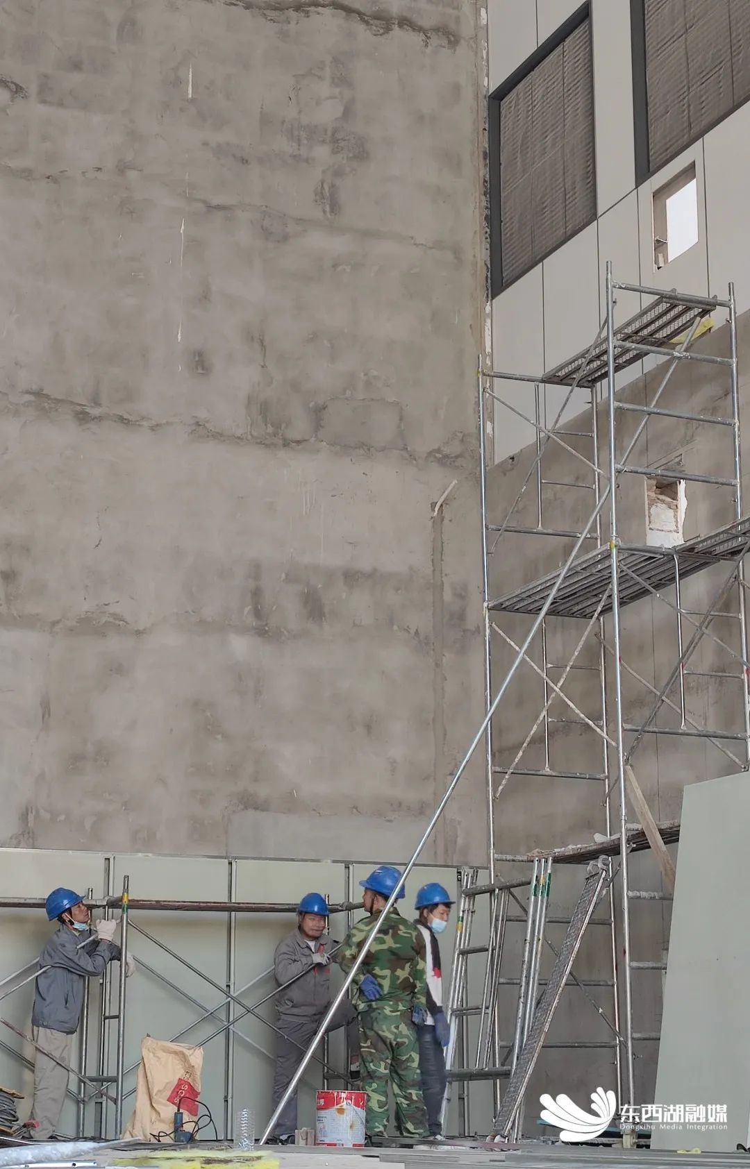工作人员正在安装吸音墙