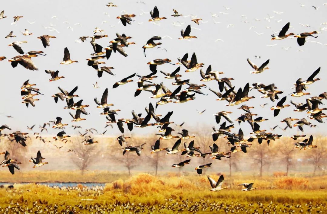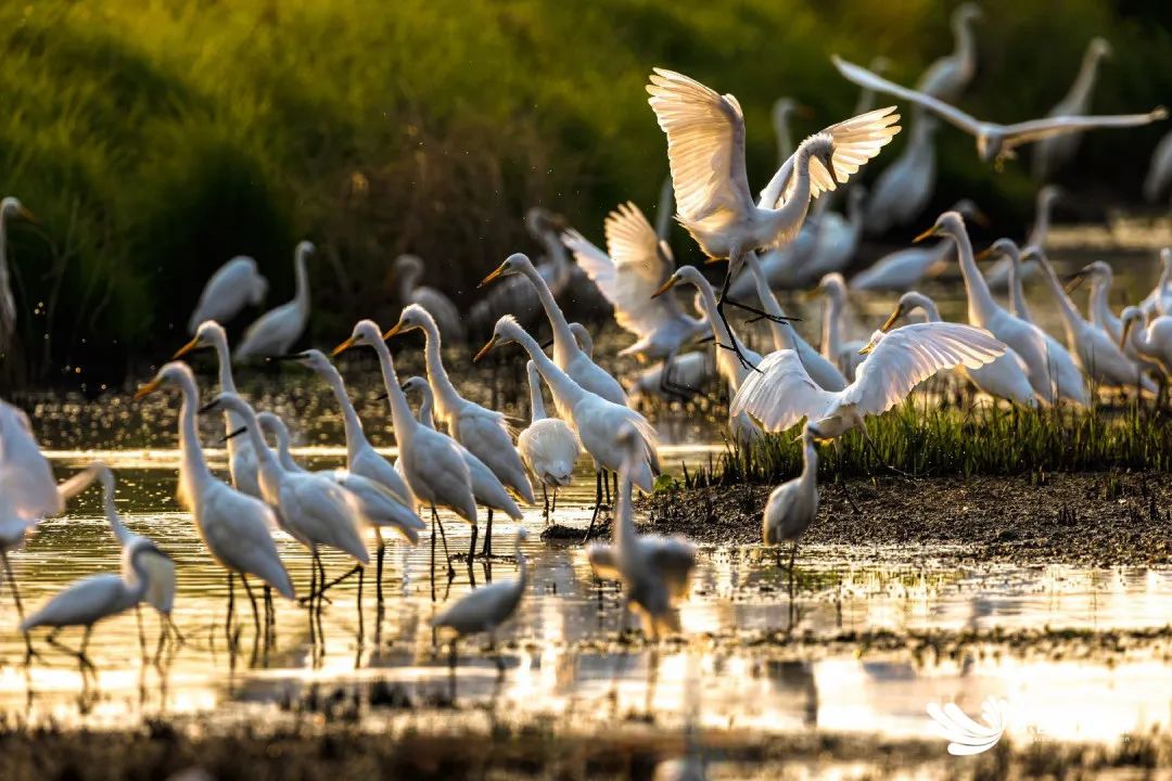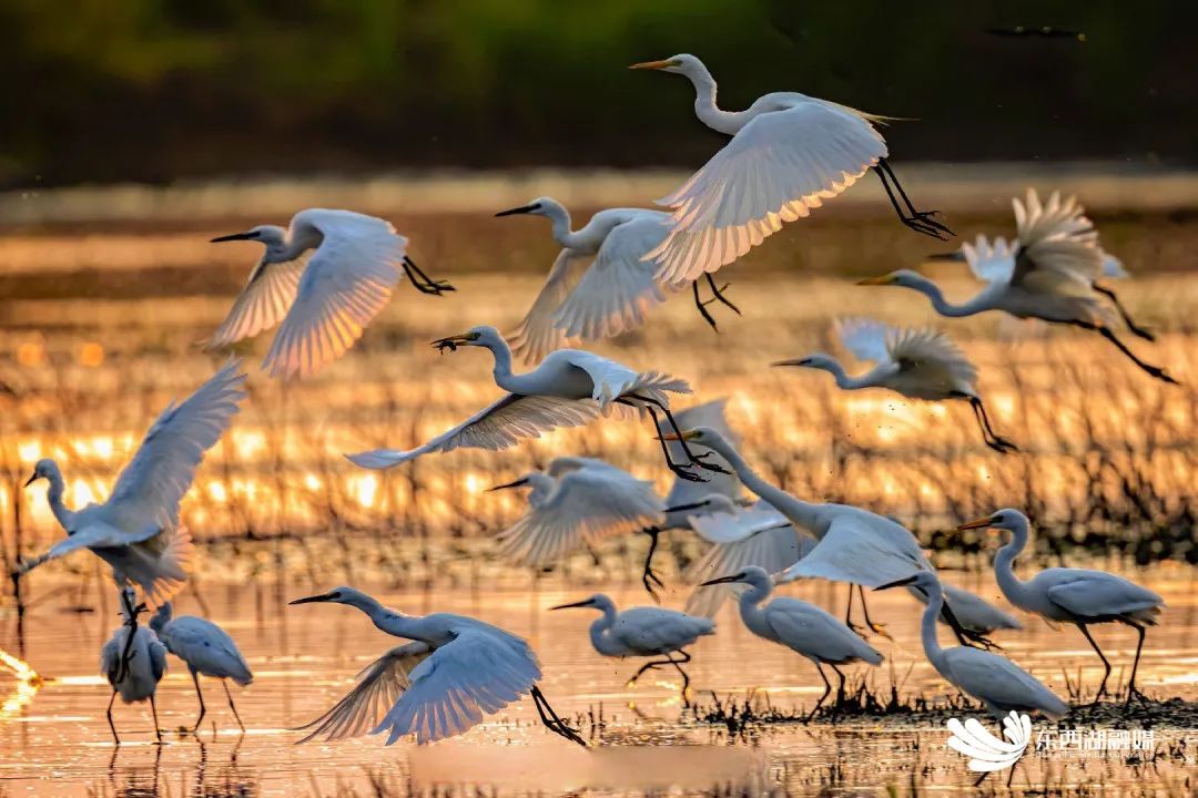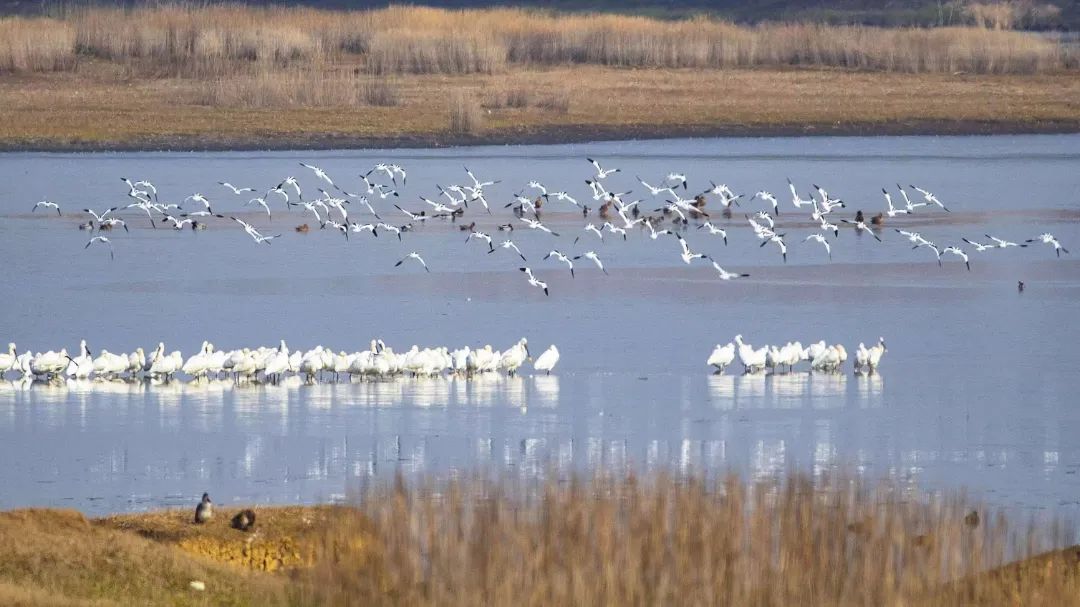 水、草、滩、鱼、虾、螺……对各种水鸟来说,堪比栖居天堂。雁、鸭、琵鹭、鸥、鹬等水鸟,每年不远千里迁徙而来。