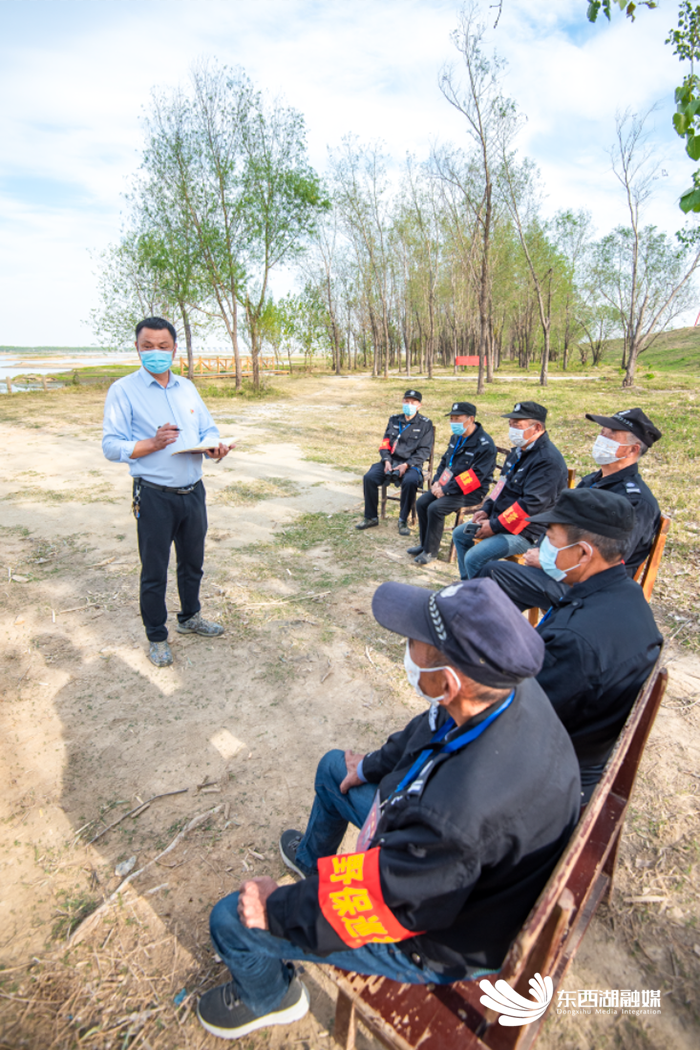每天早上7时至傍晚6时,花甲护鸟队兵分两路,从护鸟队营地分东西两侧出发,沿天鹅湖围栏展开合围式巡查,在中线汇合点交接后原路返回,往返路程13公里,耗时3小时左右。