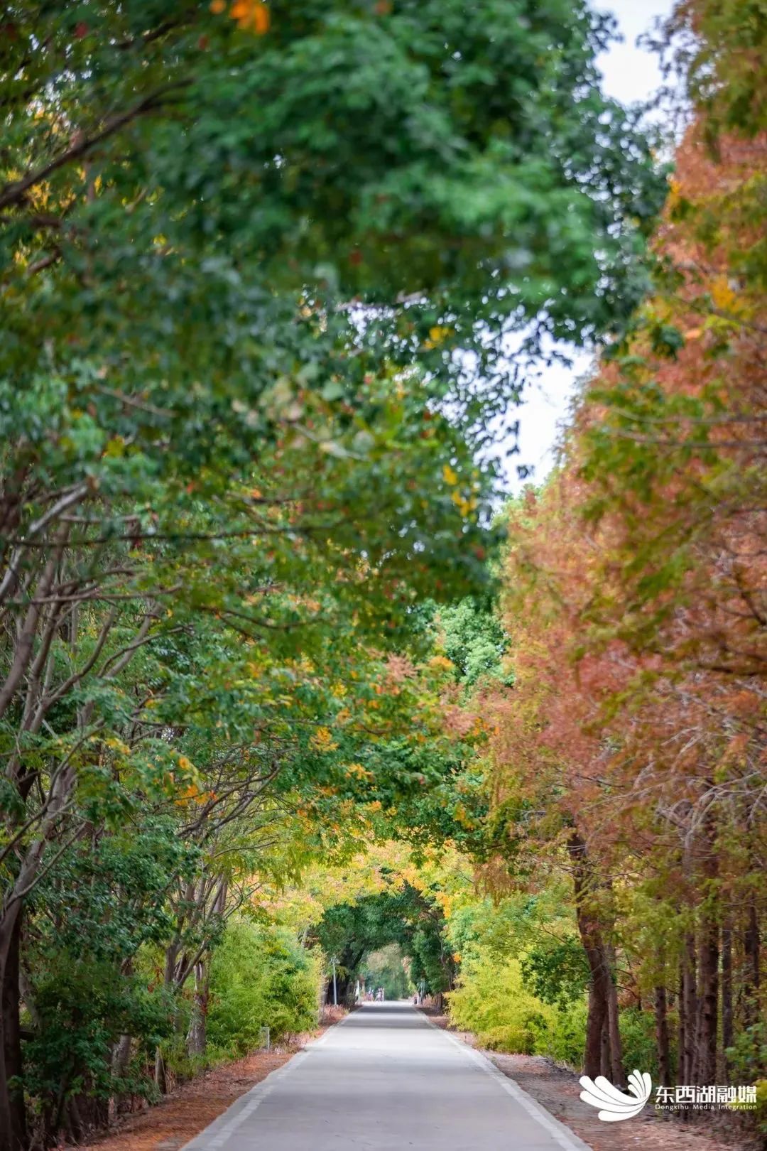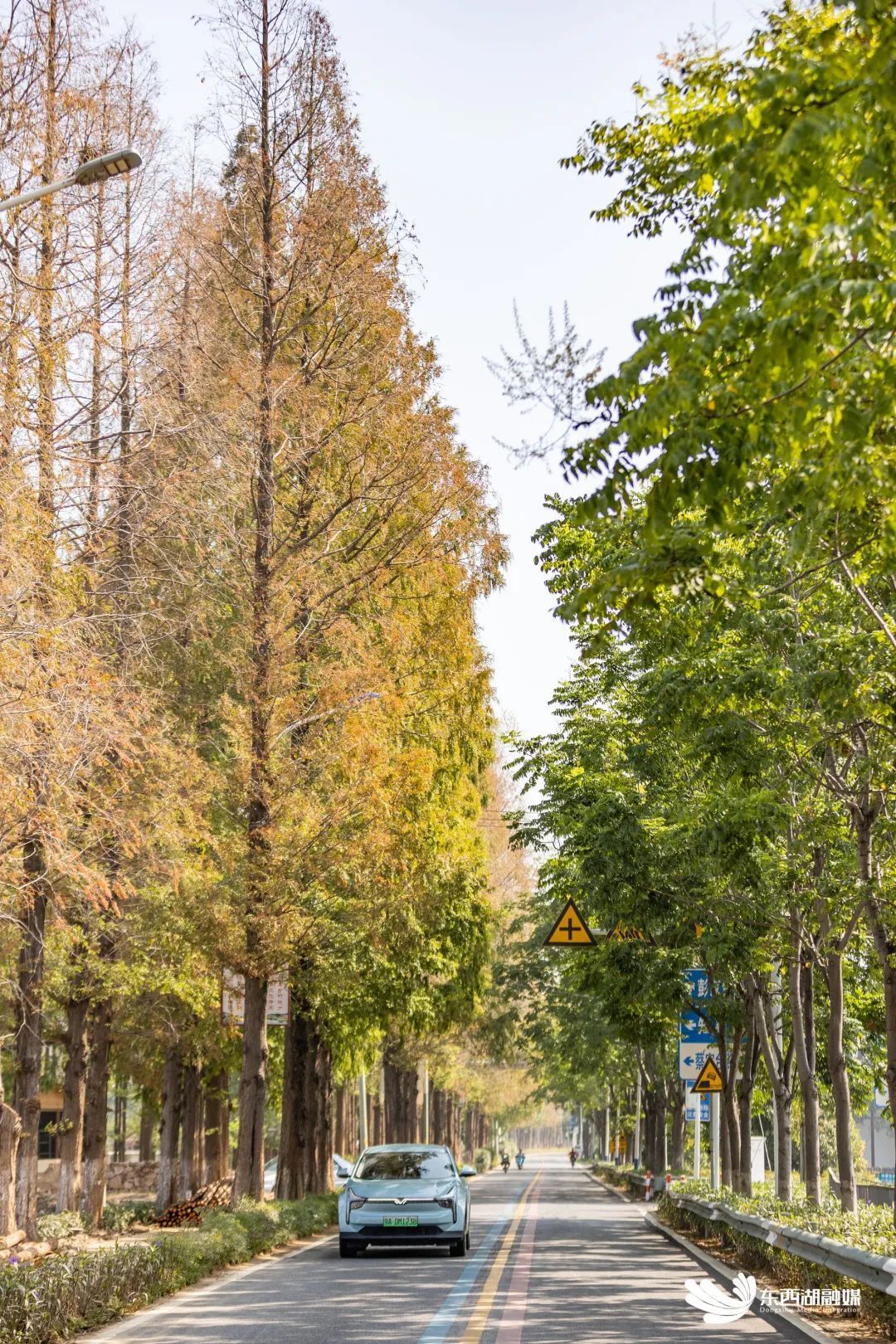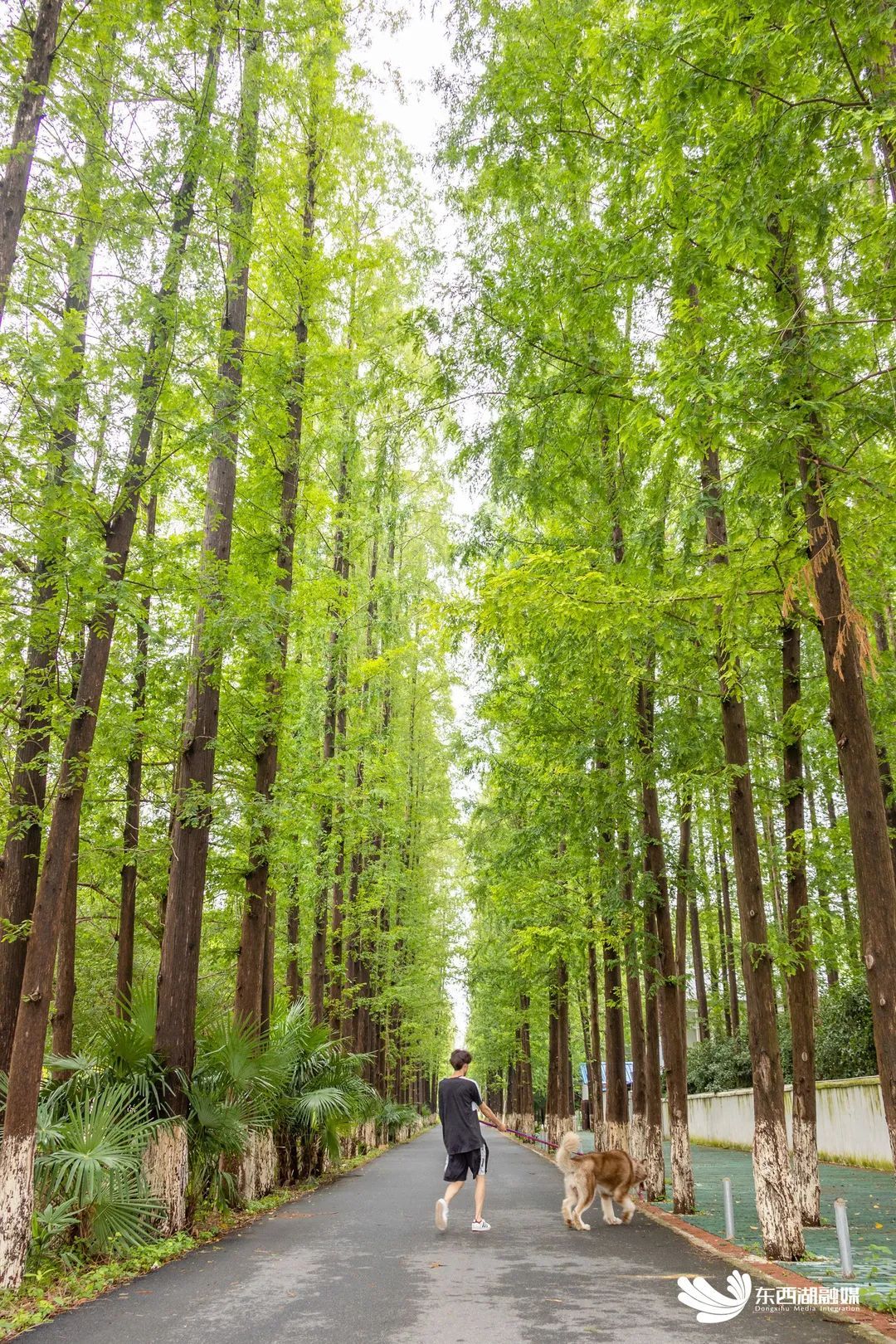 此时,慈惠街主次道沿线两侧,笔直挺拔的水杉,如仪仗队挺立着,一字排开,站成两行向远方延伸。塔状树形让它有种高耸入云的巍峨感,随风摇曳的枝条仿佛跳动的旋律,让自然和谐的曲调更有节奏感。