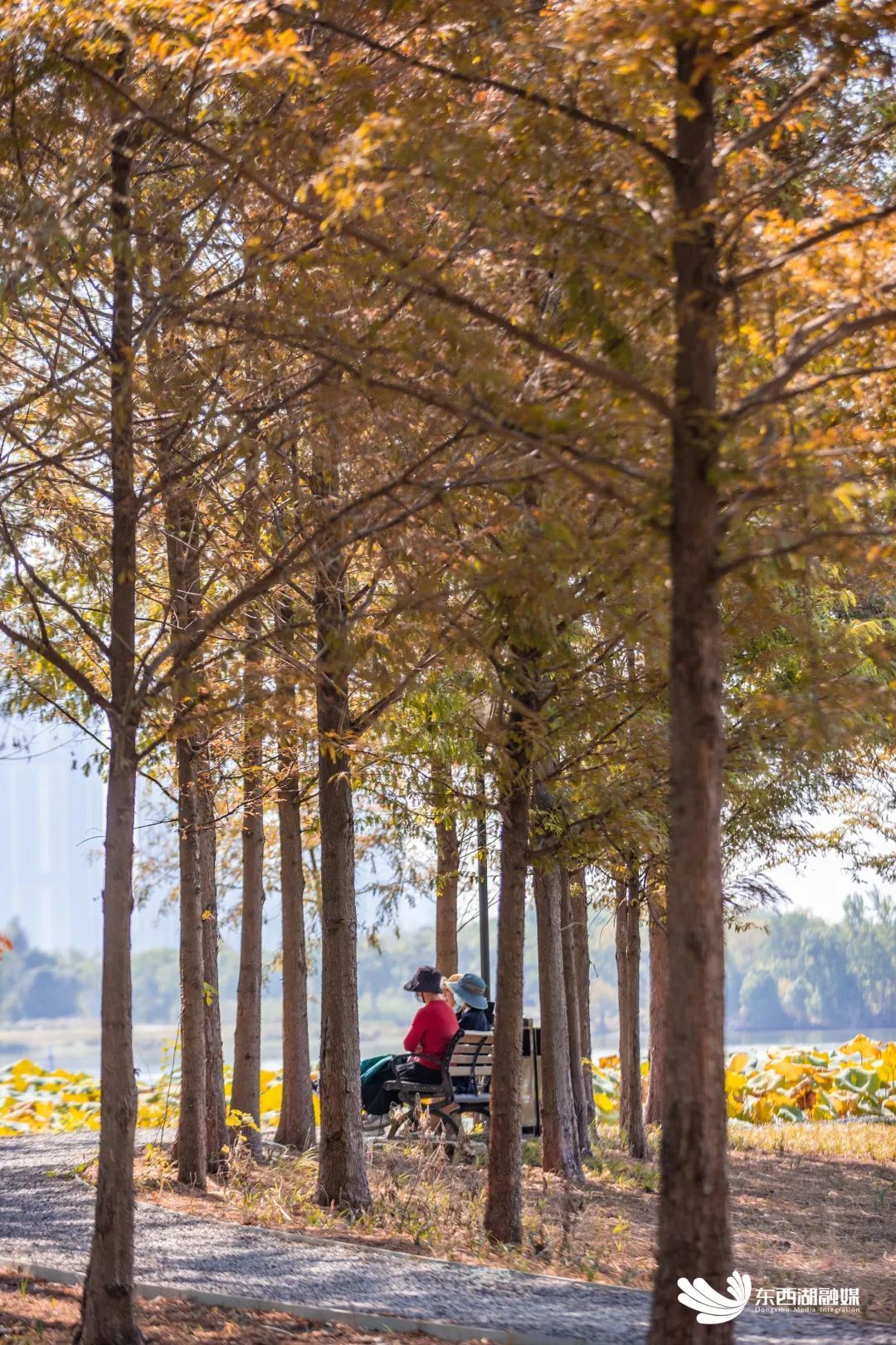 关于深秋的风景符号,一千个人有一千个答案,在我心中最偏爱的还是水杉渐变下的斑驳色彩。