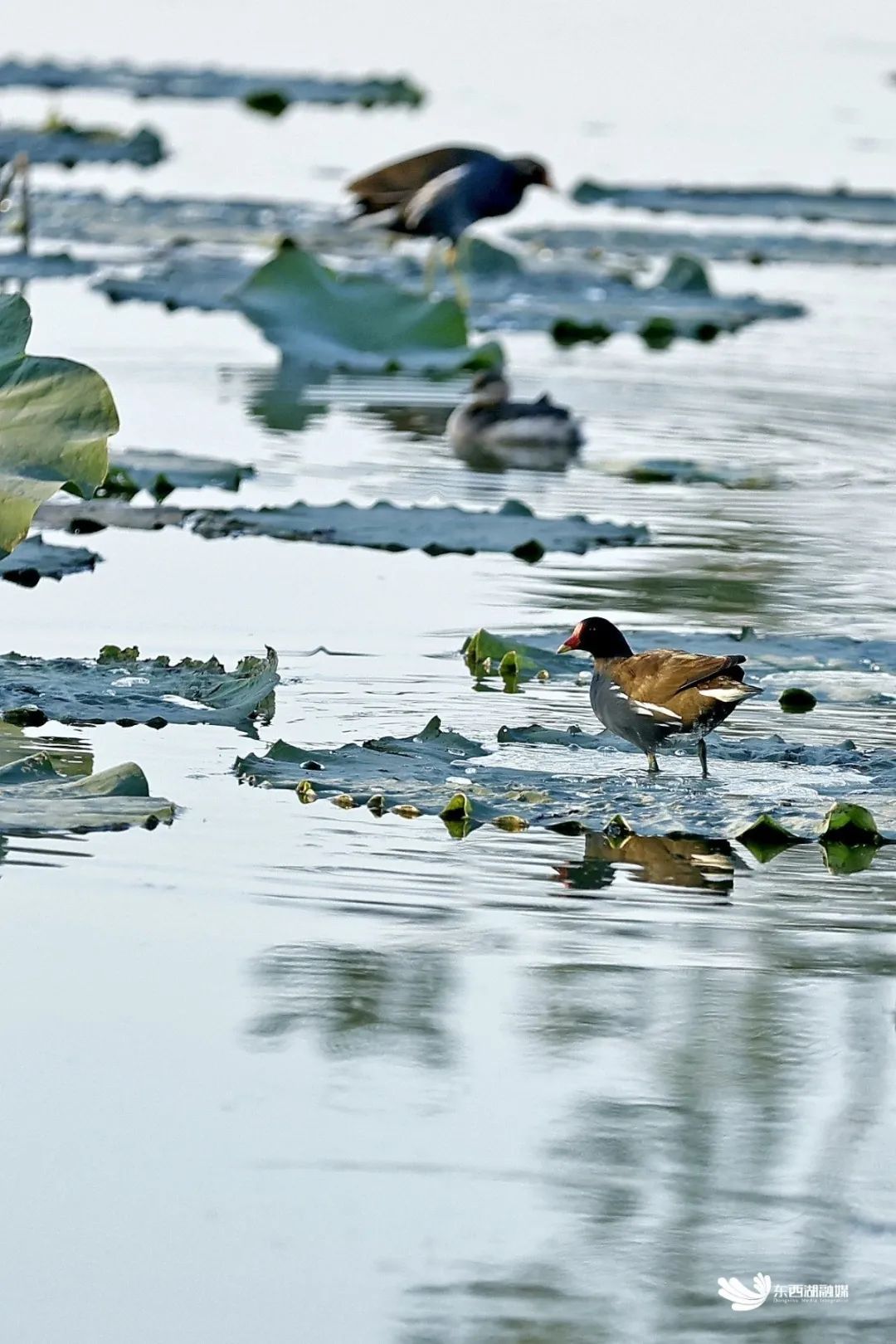 此外,各种水生植物在东西湖湿地广泛分布,菖蒲、芦苇、荷花、睡莲等50余种,10万余株水生植物扮靓大小湖泊。