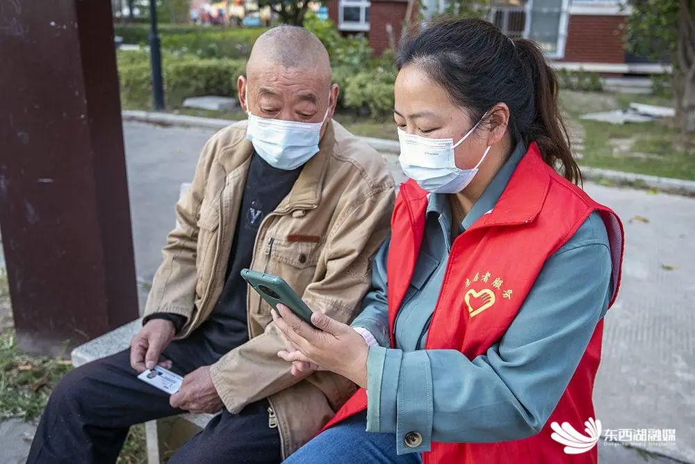“你看这有几方便哟,不到1分钟就办好了!”10月13日下午,东西湖区走马岭街苗湖社区汉江湖畔小区,71岁的胡解炎看见身穿红马甲的社区志愿者肖茜后,上前咨询退休工资卡资格审查如何办理。肖茜让老人坐上长椅,打开手机APP帮忙录入人员信息、通过人脸识别办妥了资格审查,胡爹爹格外开心。