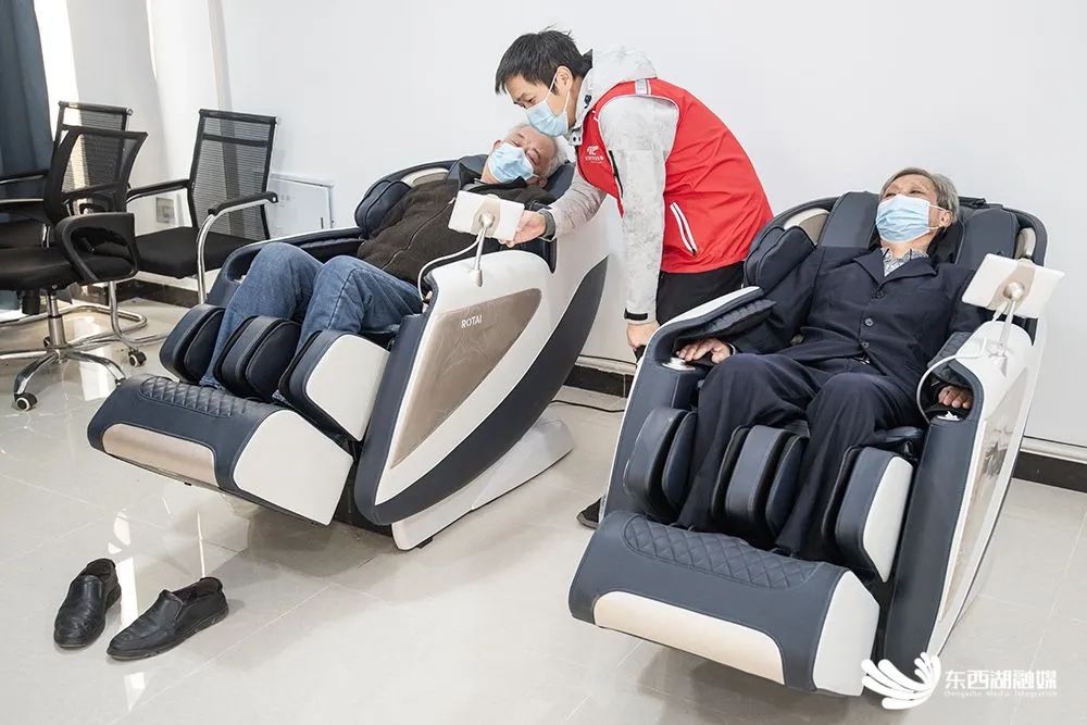 67岁的杨克贵是老年活动中心的常客,他和朋友常来习练书法、切磋象棋,其中舒适的按摩椅是他的心头好。