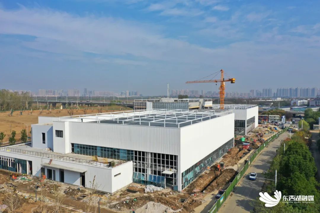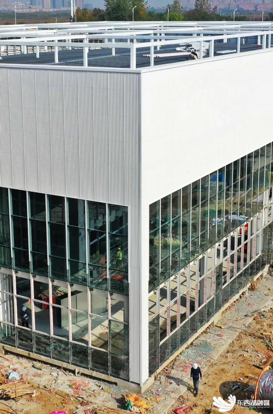 在建的四层综合型体育馆面向府河呈开放姿态,宛若“绿立方”。施工现场,工人师傅们争分夺秒、分工协作,正紧张而有序地忙碌着。
