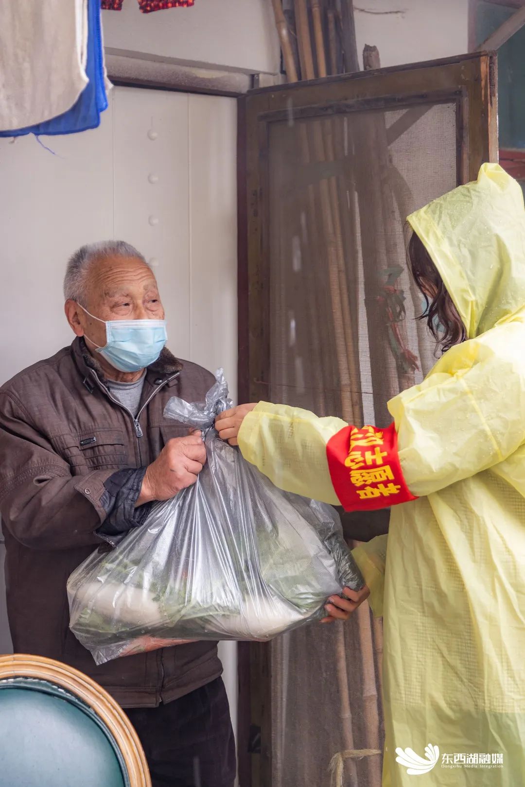 11月28日,东西湖区吴家山街额头湾社区的独居空巢老人、低保家庭陆续收到社区工作人员送来的“爱心蔬菜包”后,不断道谢。