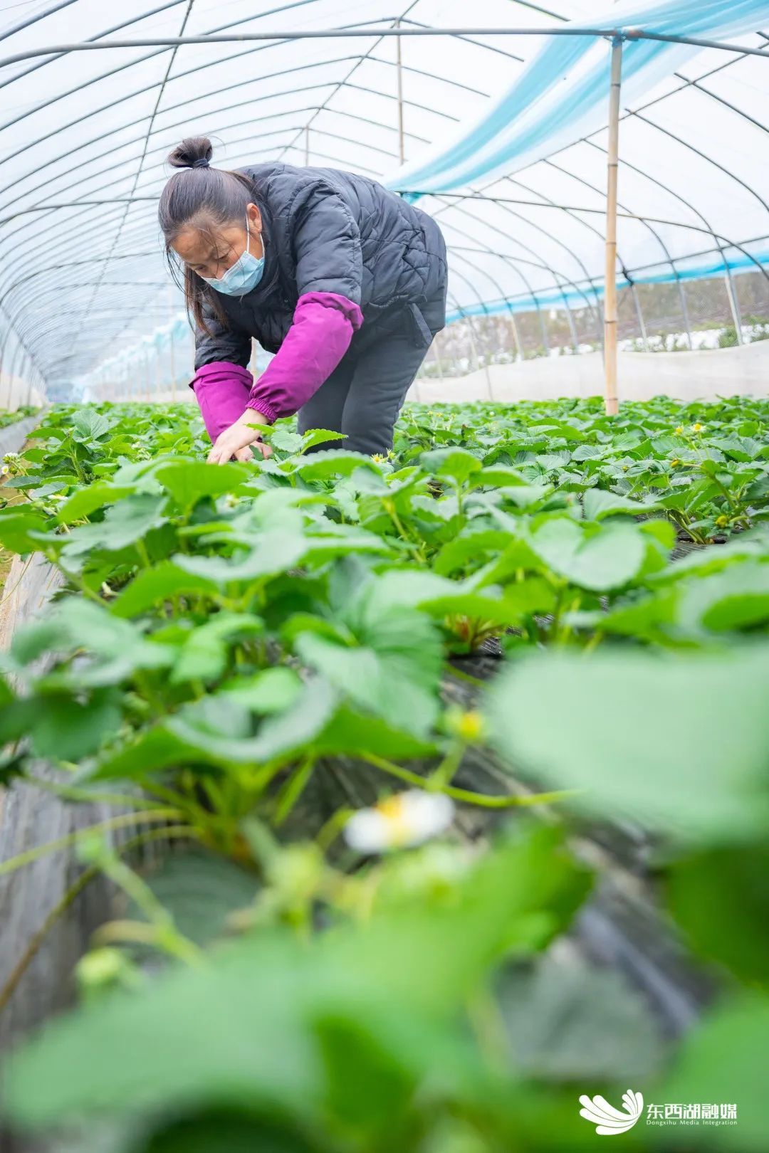 11月28日,慈惠街农户丁熙平在打理自家种的草莓。