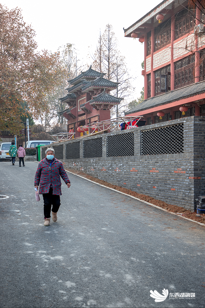 2022年9月,茅庙集社区“擦亮小城镇”二期建设拉开帷幕,腊月巷等7条背街小巷进入整体“改造时间”。如今,腊月巷西头第一户周艳华家,院落围墙消失不见,代之以透光透亮的垛子墙。墙体为灰色青砖,红色瓦片组成的波浪造型点缀其间,彰显湖乡韵味。