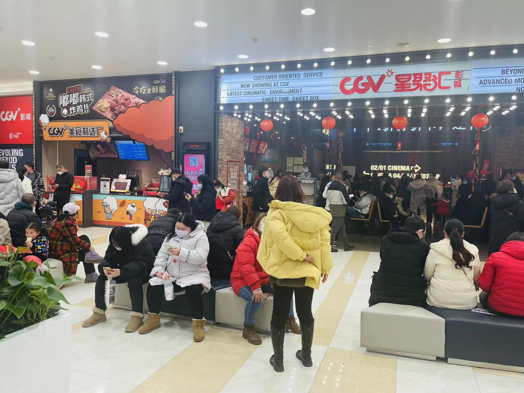 “今天没有什么事,就约着兄弟姐妹们一起看场贺岁档的电影。”大年初三上午10点,家住将军路街的陈女士便约上了自家亲戚,驱车从家里出发到永旺梦乐城武汉金银潭购物中心看电影,他们提前订好了初三上午10点50的电影票,“我们想着来早一点,逛逛商场买点自己喜欢的东西,没想到一大早就这么热闹。”