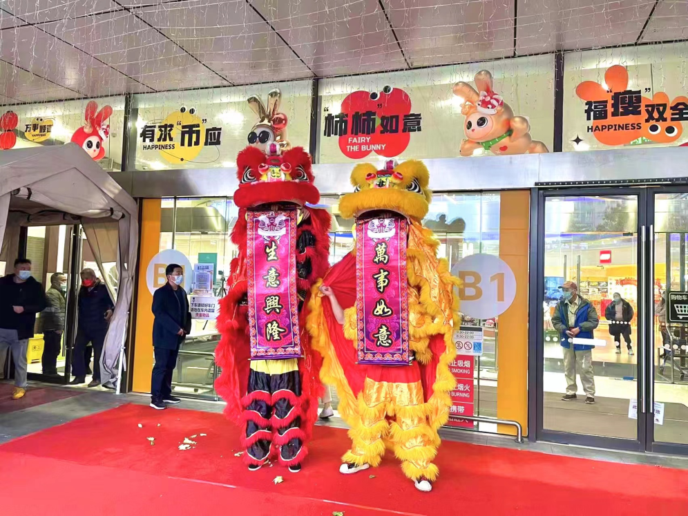 1月22日,大年初一早上9点58分,一场精彩的舞狮在商场门口的空地广场上演,伴着最后一声锣音,商场大门向市民敞开,从大门进去,非遗市集呈现在众人面前,糖人、剪纸、草编等非遗文化在各个摊位前表演起来。