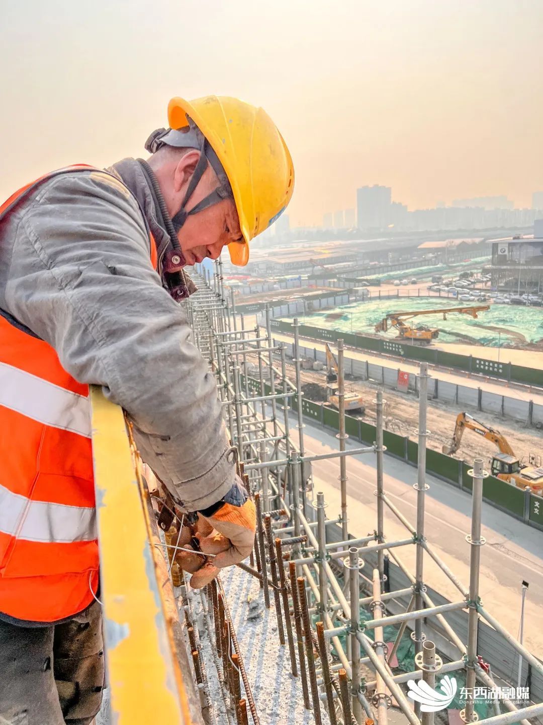 工地上焊花飞溅,工程车辆来回穿梭,项目建设者在各自岗位上忙碌着……