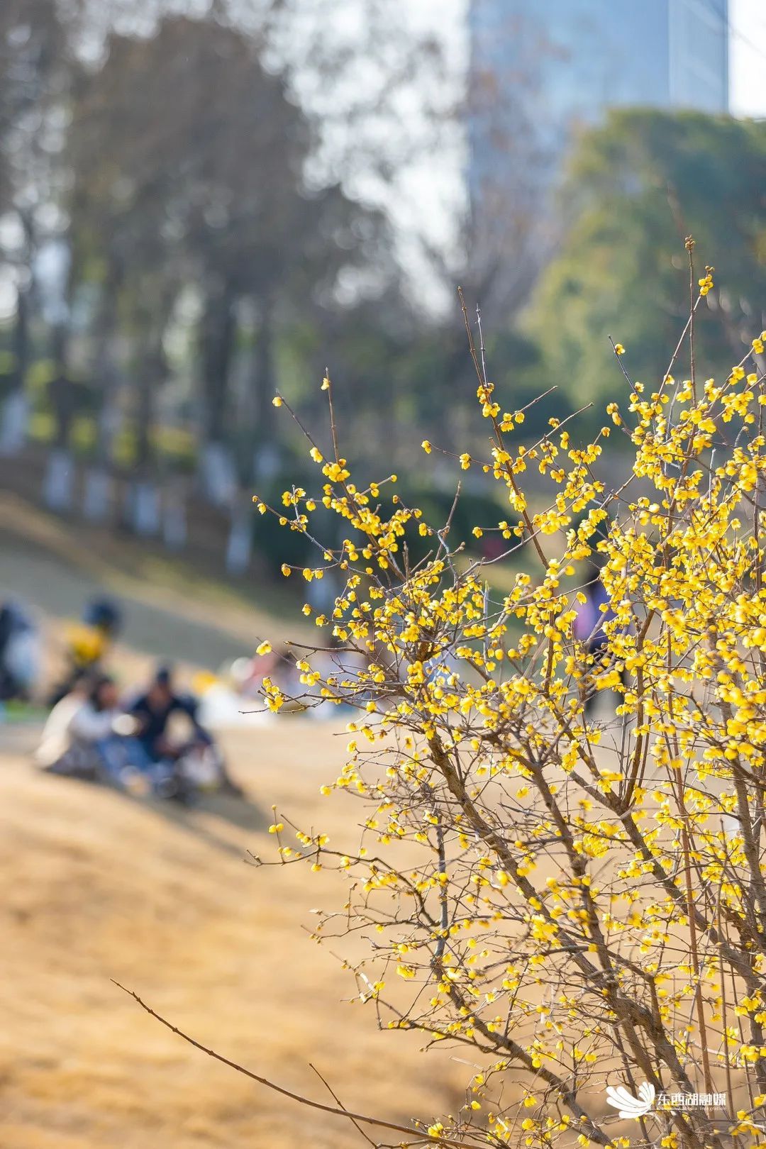 今日立春,东西湖区码头潭文化遗址公园里,腊梅盛开,市民闻香寻梅,感受早春的气息。