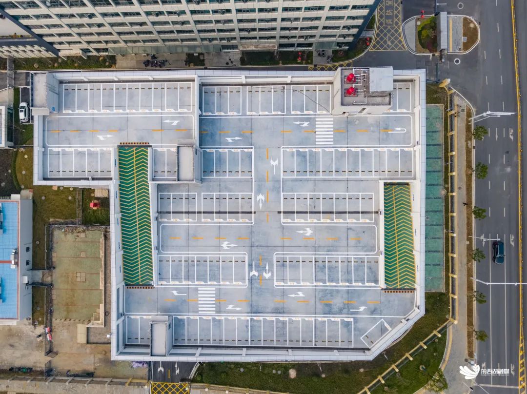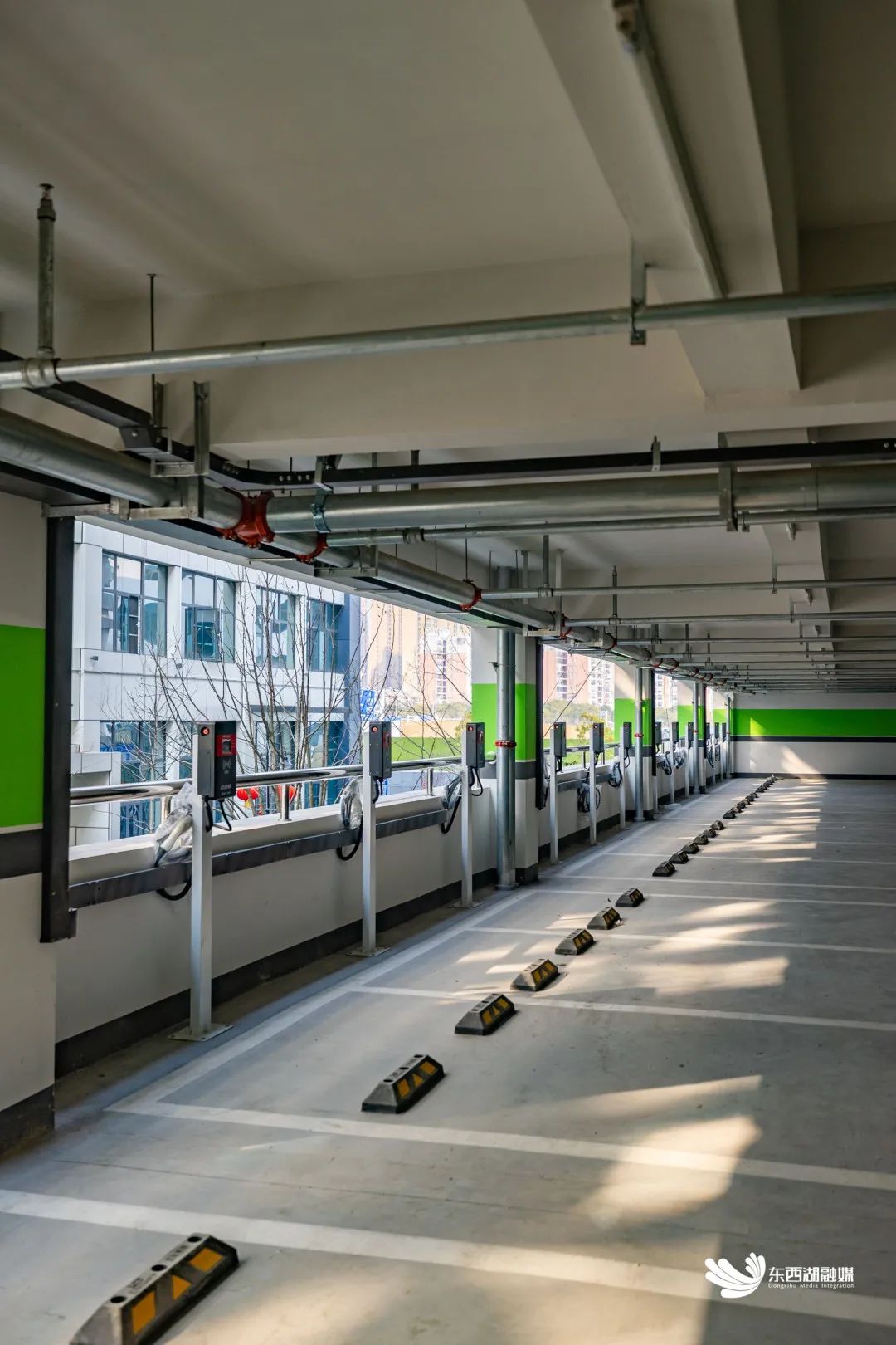 随着临空港新城多个住宅小区交付,居民公共服务需求日益增加。位于径西二路和智雅路交叉口的五环停车楼,地上共有8层,总建筑面积约2万平方米,停车泊位中包括136个充电桩车位,其中有28个快充电桩。