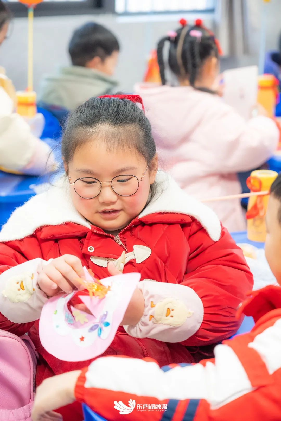 随后,孩子们还参与了“摆春盘”“做春帽”“绘春图”等创意活动。