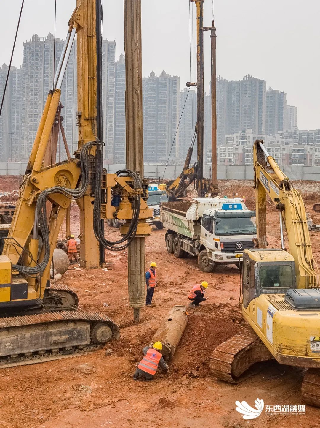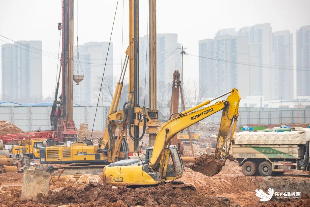 记者在现场看到,6台冲孔桩机、8台旋挖机、10台挖掘机同步作业,60余辆运输车轮番上阵,施工现场一片火热,项目已全面进入加速建设阶段。