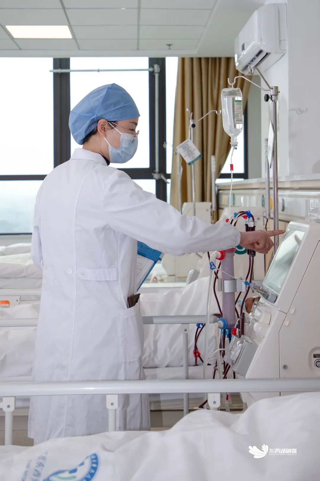 “一般情况下,患者每周需做2到3次透析,每次时长在4小时左右。在透析过程中,我们会通过巡查减轻患者的不安与焦虑。”伍彬介绍,血液净化科室偏暖色调营造安静舒适空间,在插座位置等硬装设计上,有不少方便病员的特别定制。“医护人员随叫随到,在医疗服务上做到全心全意。”