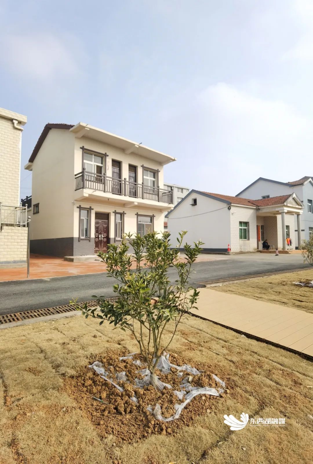 半亩河塘旁,村民房前屋后焕然一新和新栽种的果树苗