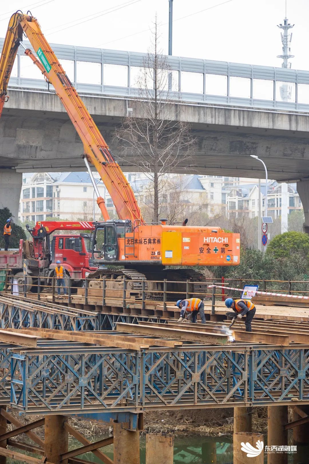 王女士所说的新修道路,是东西湖区正在修建的碧水大道。当天,记者在马池中路与常青北路交汇处看到,15名施工人员正在机场河明渠上修建临时的钢栈桥,便利水上作业修筑桥墩,施工现场一派热火朝天的景象。桥梁建成后,将搭建起金银湖与将军路的又一便捷通道。