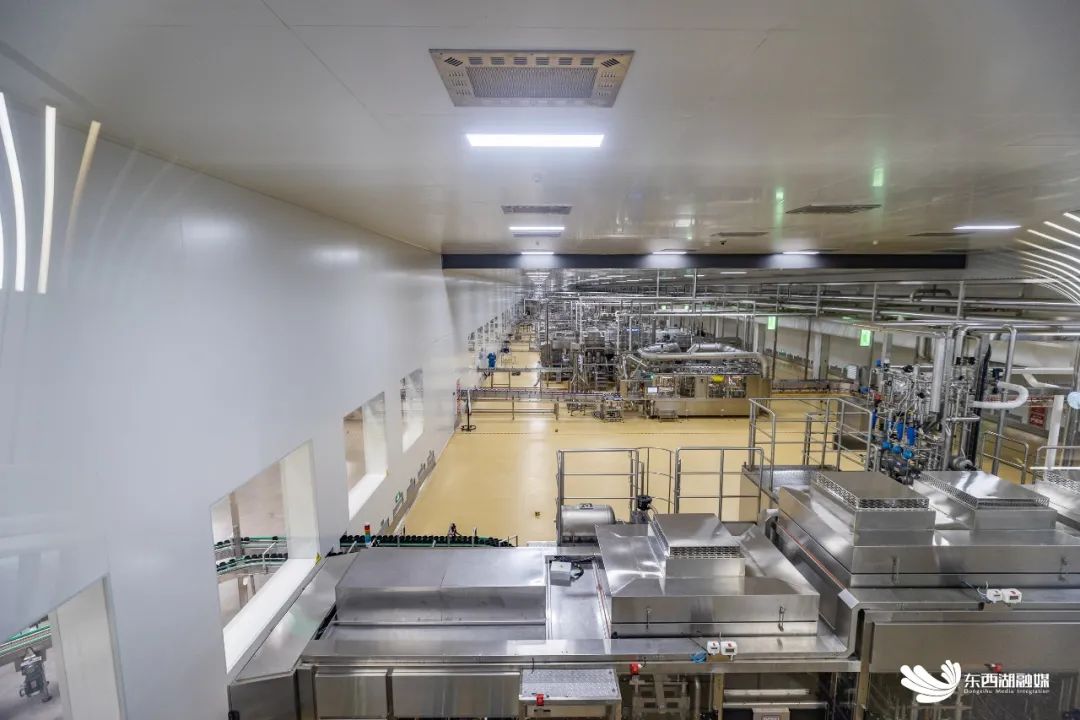 透过参观走廊的透明玻璃,只见一罐罐酸奶产品正在全自动化的产线上高速运行,预处理、灌装、包装等多个环节分秒不停,而操作工人的身影则很少见。