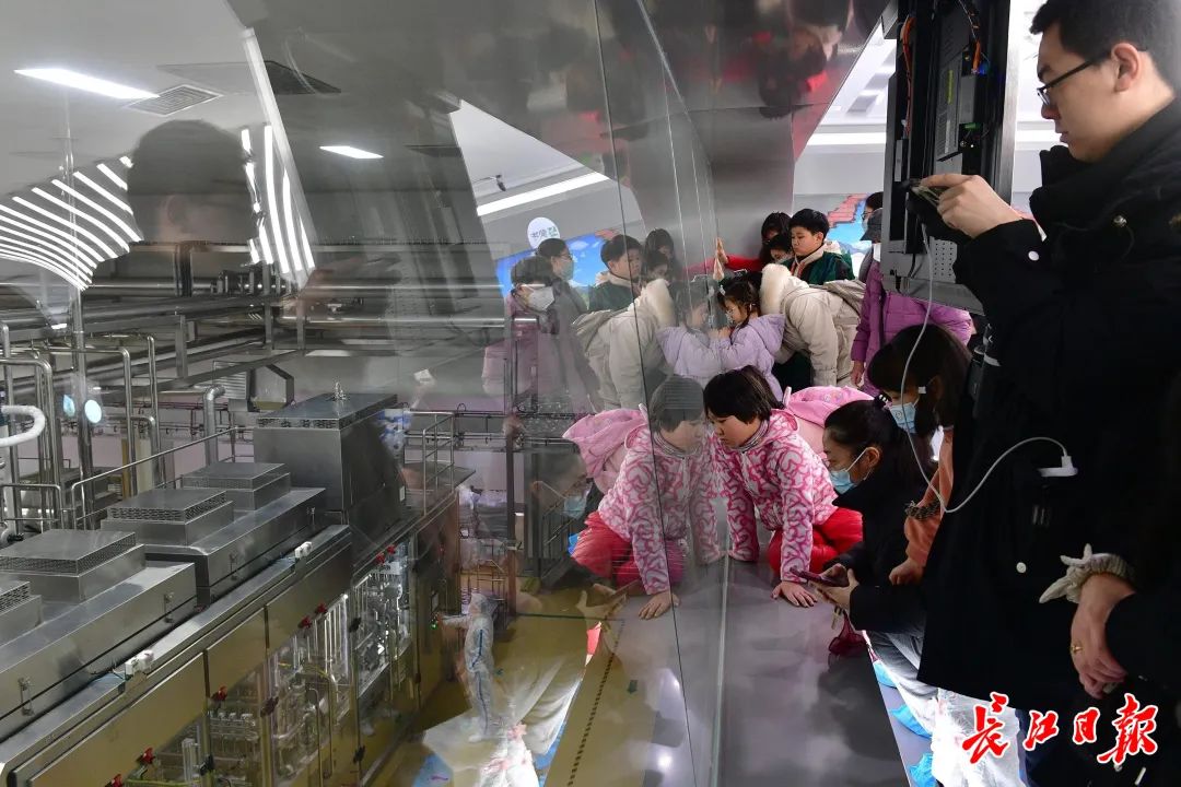蒙牛武汉消费者体验馆,近距离观察酸奶生产车间。 长江日报记者李永刚 摄