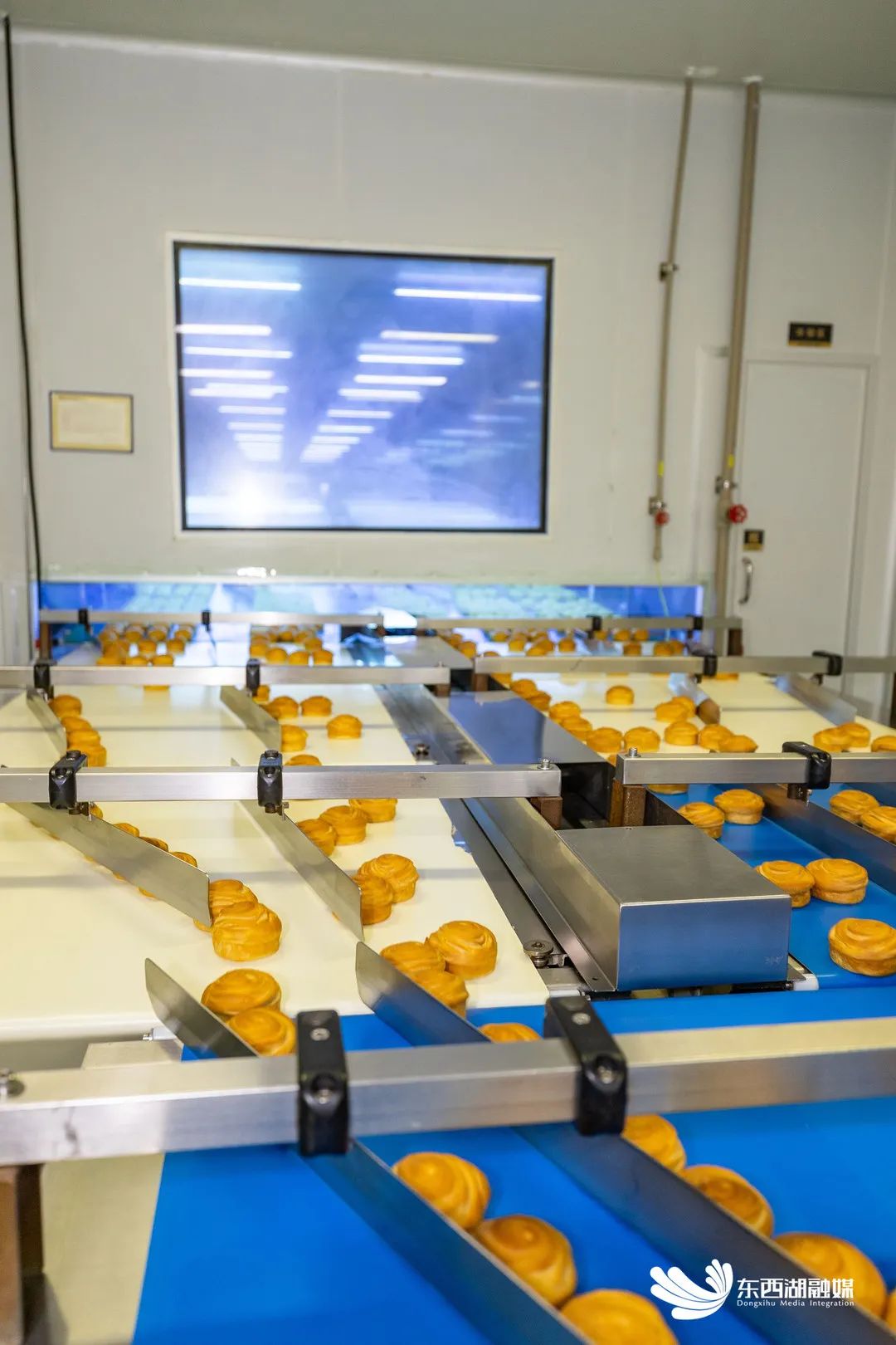 与福气面团产业园相隔不远处,则是该公司于2018年追加投资启用的焙星期工厂。走进位于走马岭食品一路的这家蛋糕面包生产园区,香味四溢,成箱的产品随时装车运往全国各地。