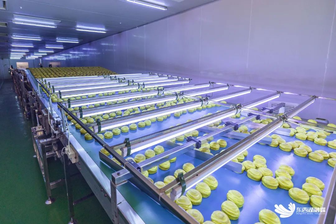 在东西湖,各大食品企业纷纷追加投资新建智能工厂,涌现出“二期现象”。而位于走马岭的福气面团产业园,则是该公司近年来在东西湖的“三期投资”,项目总投资3.5亿元,占地面积86亩,建筑面积达7万平方米。产业园全部生产线投产后,年产值将达30亿元。