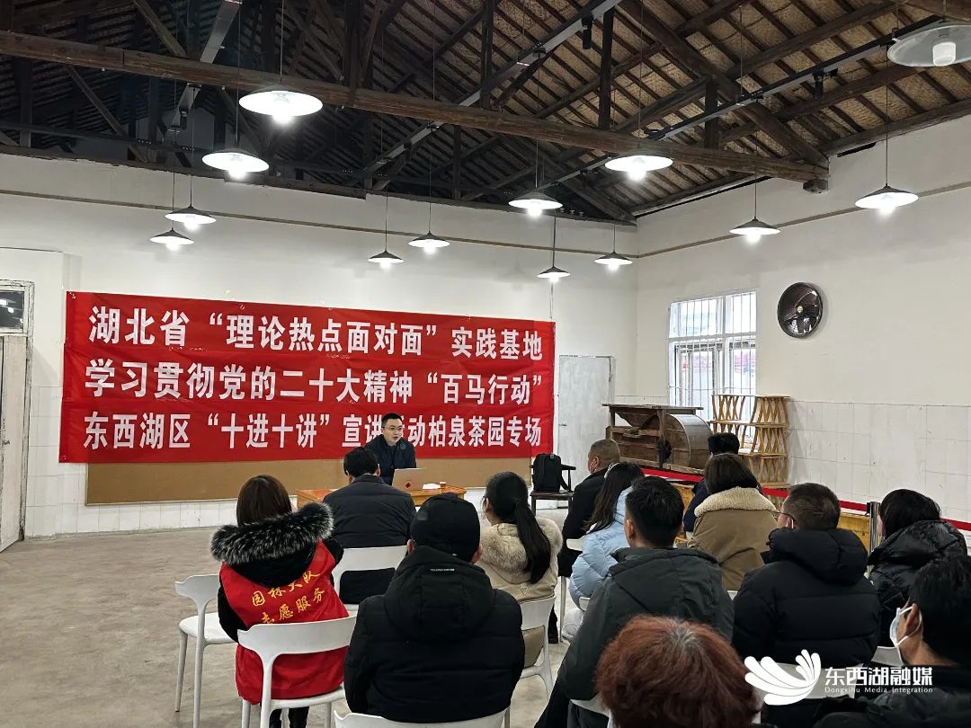 当天下午,宣讲队分赴东西湖区新时代文明实践中心的群众大舞台、柏泉街道柏泉茶园、武汉第二电线电缆有限公司园区、东西湖区卫健局和区红十字会、长青街团结社区、吴家山街商会、东西湖区教育局,通过讲座、座谈等形式,将党的二十大精神送到群众中、送到一线去。