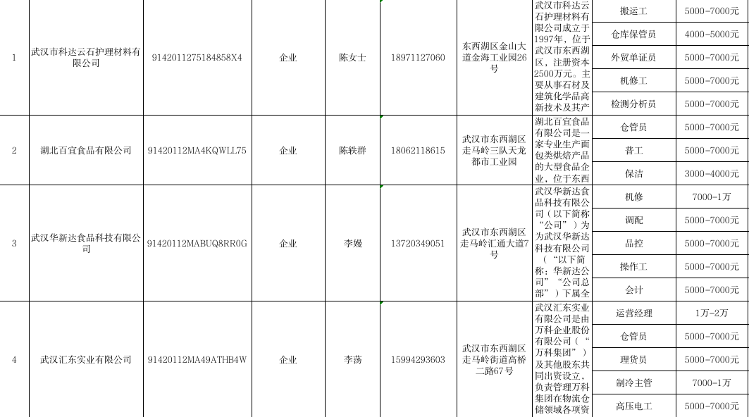 企业岗位一览表