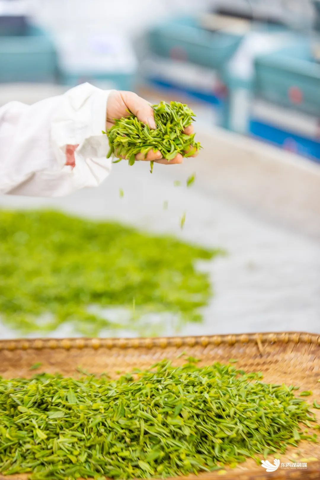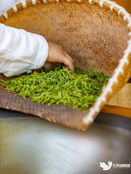 霍俊宝告诉记者,龙井讲究的“色绿、香郁、味甘、形美”,杀青只是是人工炒茶的第一个步骤,还需要通过回潮、辉锅,最终定型,看到外形扁平光直后,才算完成手工制茶的过程。