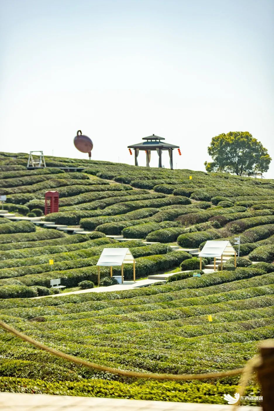 而在东西湖的柏泉茶园,伴随着微风吹动,挂满了风铃的茶园,像是快乐的孩子,开心地哼着小曲。喜欢喝茶的朋友,不妨到柏泉茶园,在风铃声中,品春日的第一口鲜“汤”。